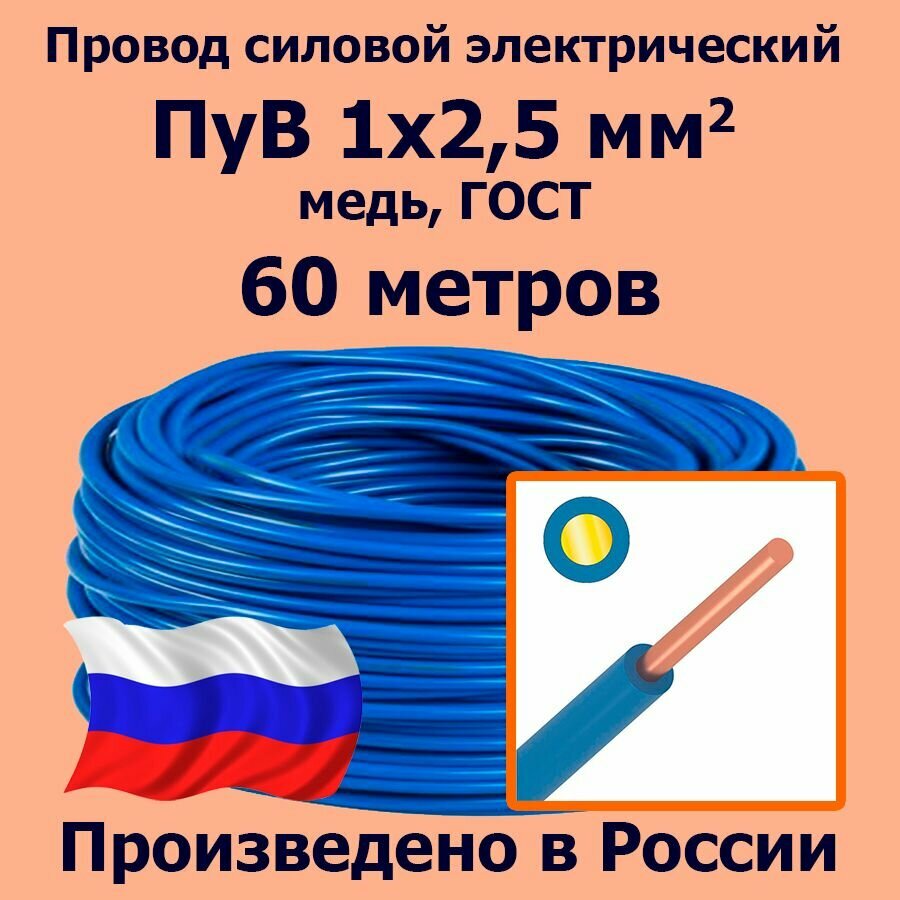 Купить Провод силовой электрический ПуВ 1х2,5 мм2, синий/голубой, медь, ГОСТ, 60 метров