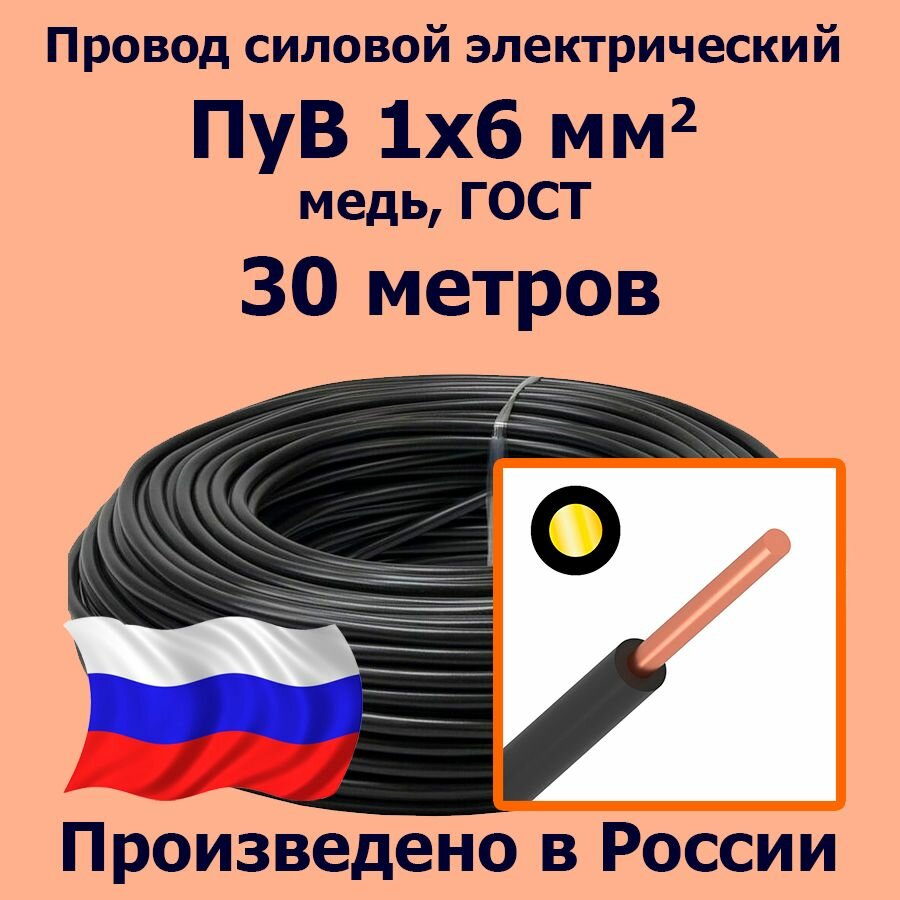 Купить Провод силовой электрический ПуВ 1х6 мм2, черный, медь, ГОСТ, 30 метров
