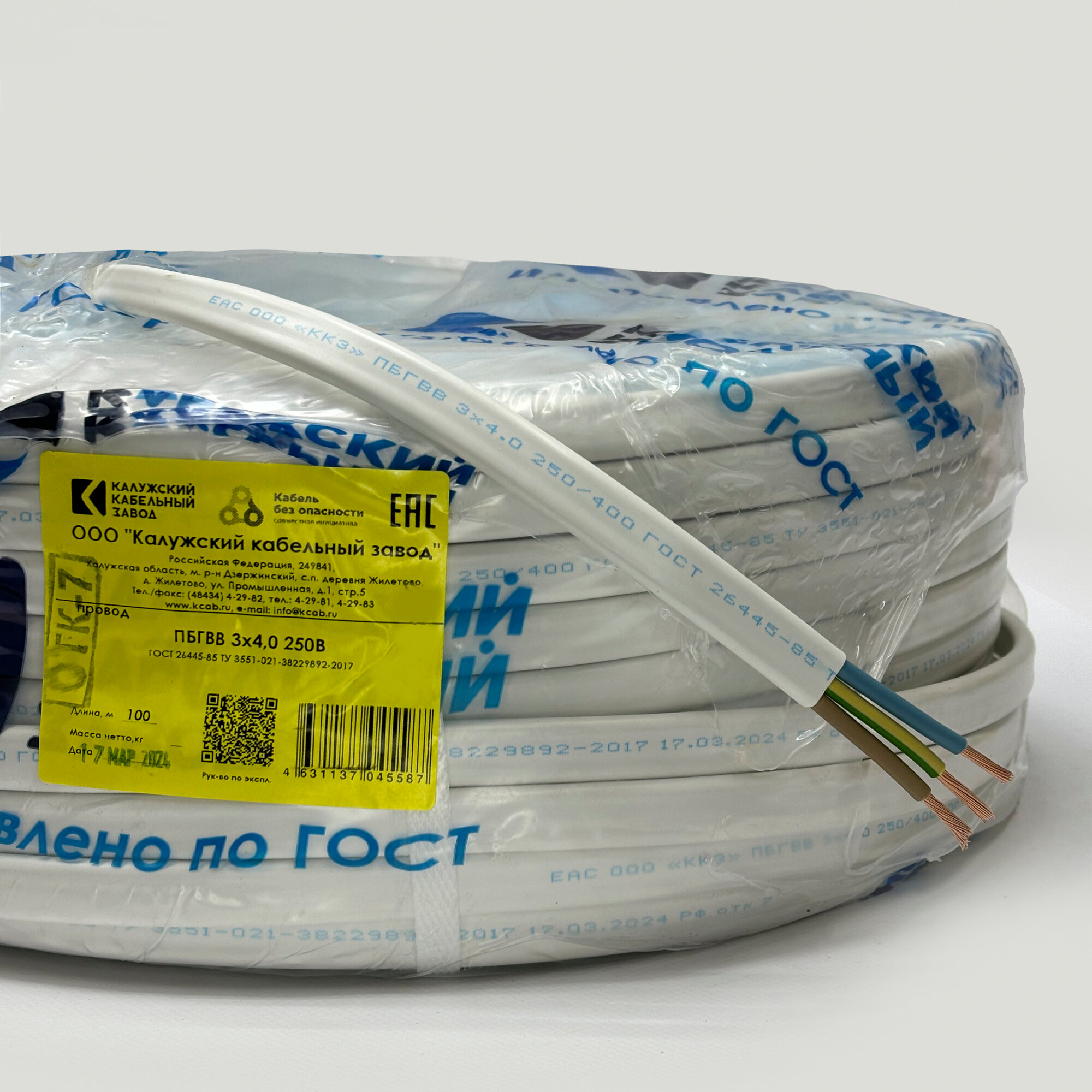 Провод пбгвв 3х2.5 50 метров Калужский кабельный завод ГОСТ