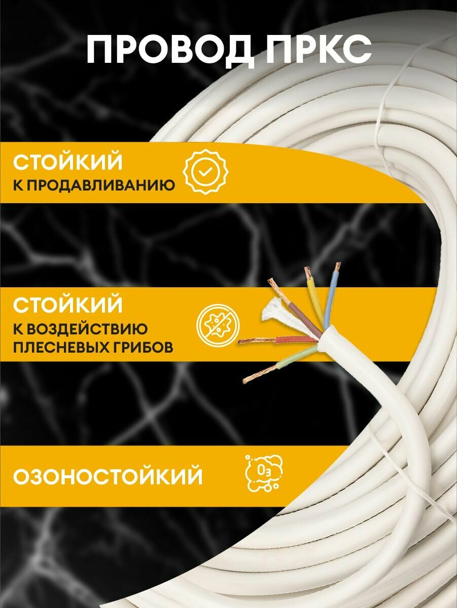 Провод термостойкий пркс 4х2.5 мм2 / 20 метров / Кабель силовой электрический соединительный для бань, саун, каминов, печей.