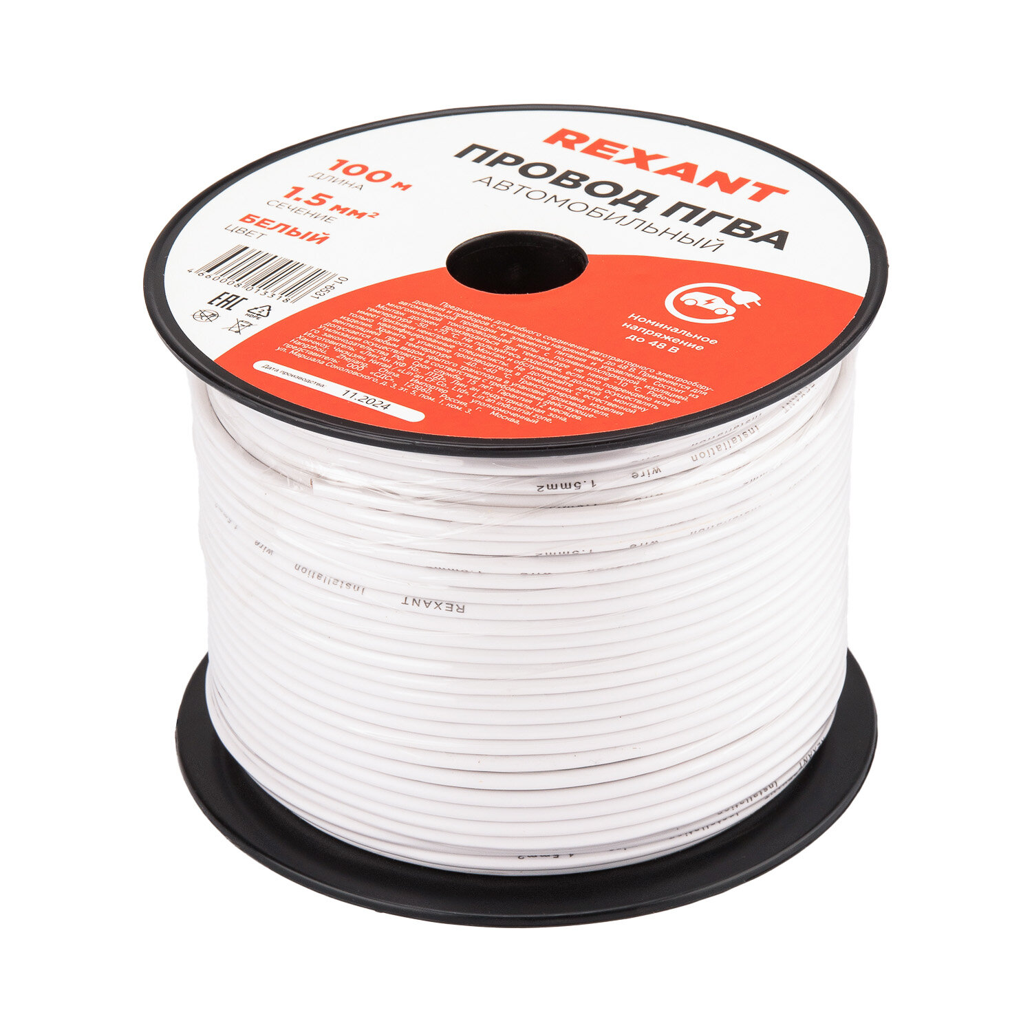 Провод автомобильный белый REXANT 1,5 мм,100 м / электропроводка / кабель для проводки / акустический кабель интересное: