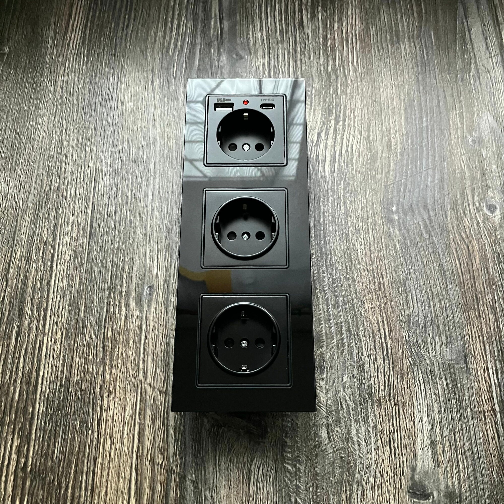 СохранитьРозетка тройная с USB и type-C входами, 3 поста рамка закаленное стекло 224mm*82mm, цвет чёрный. F6 интересное: