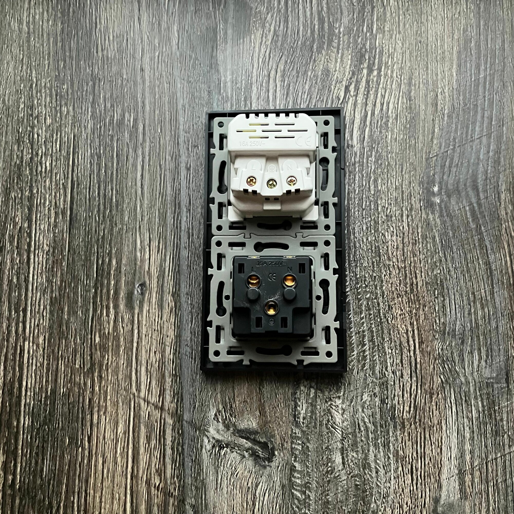 Розетка двойная с USB и type-C входами, 2 поста рамка закаленное стекло 153mm*82mm, цвет серый. F6