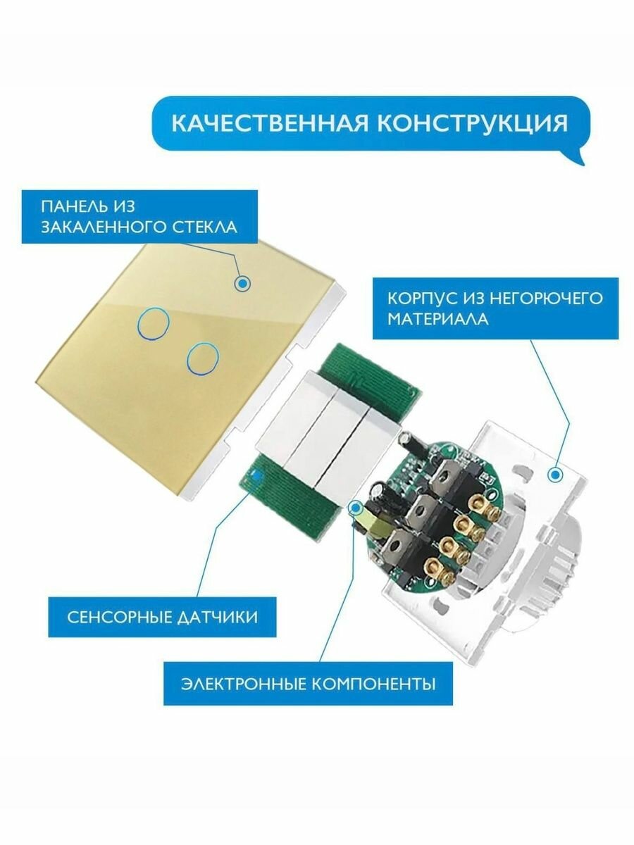 СохранитьВыключатель сенсорный двойной, закаленная стеклянная панель, цвет-золотой глянец, два поста. интересное: