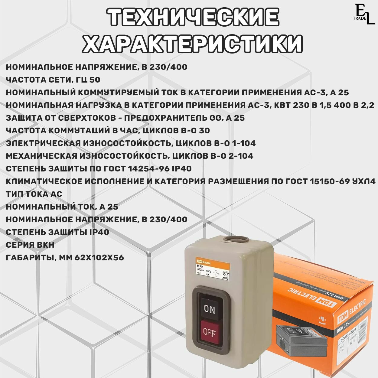 Выключатель кнопочный с блокировкой ВКН-325, 3Р, 25А, 230/400В, IP40, 62х102х56 мм интересное: