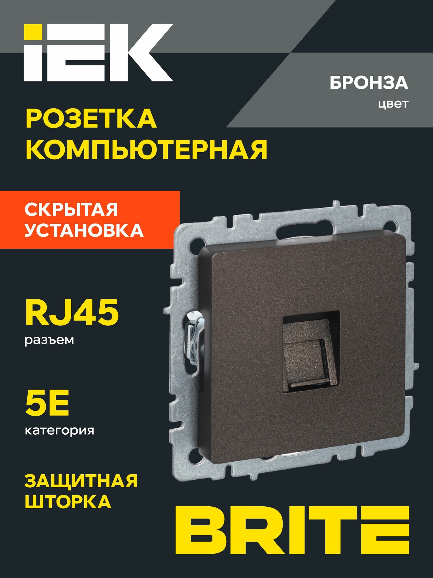 Купить Розетка компьютерная RJ45 кат.5E РК10-БрТБ темная бронза IEK серия BRITE