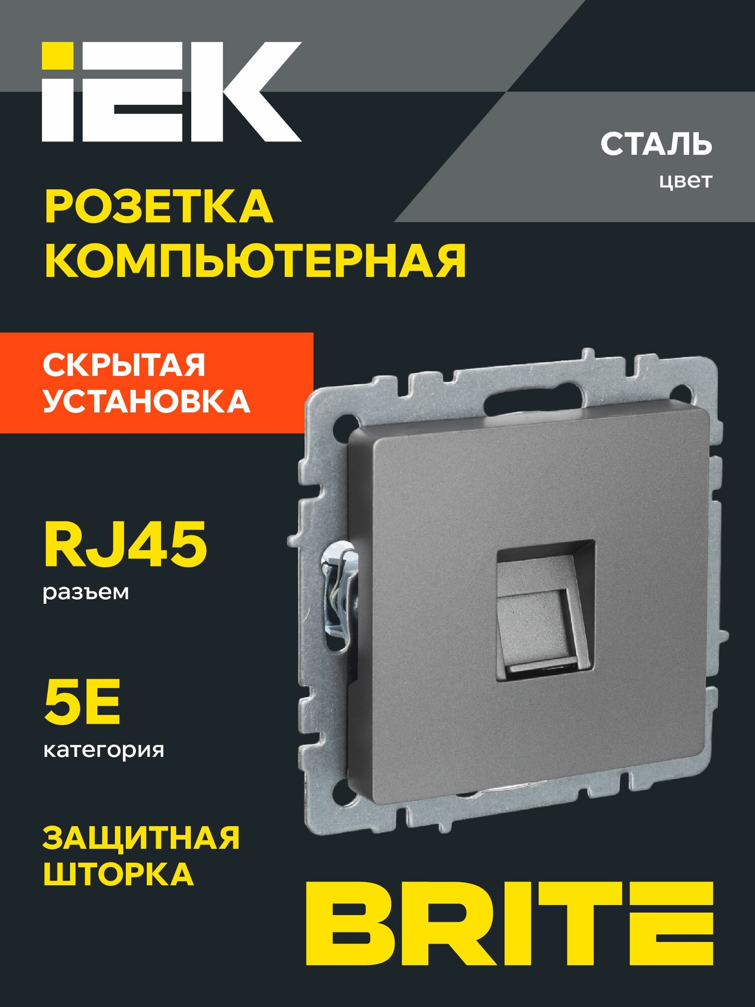 IEK BRITE Роз. комп. RJ45 кат.5E РК10-БрС сталь, IEK, арт. BR-K10-1-K46