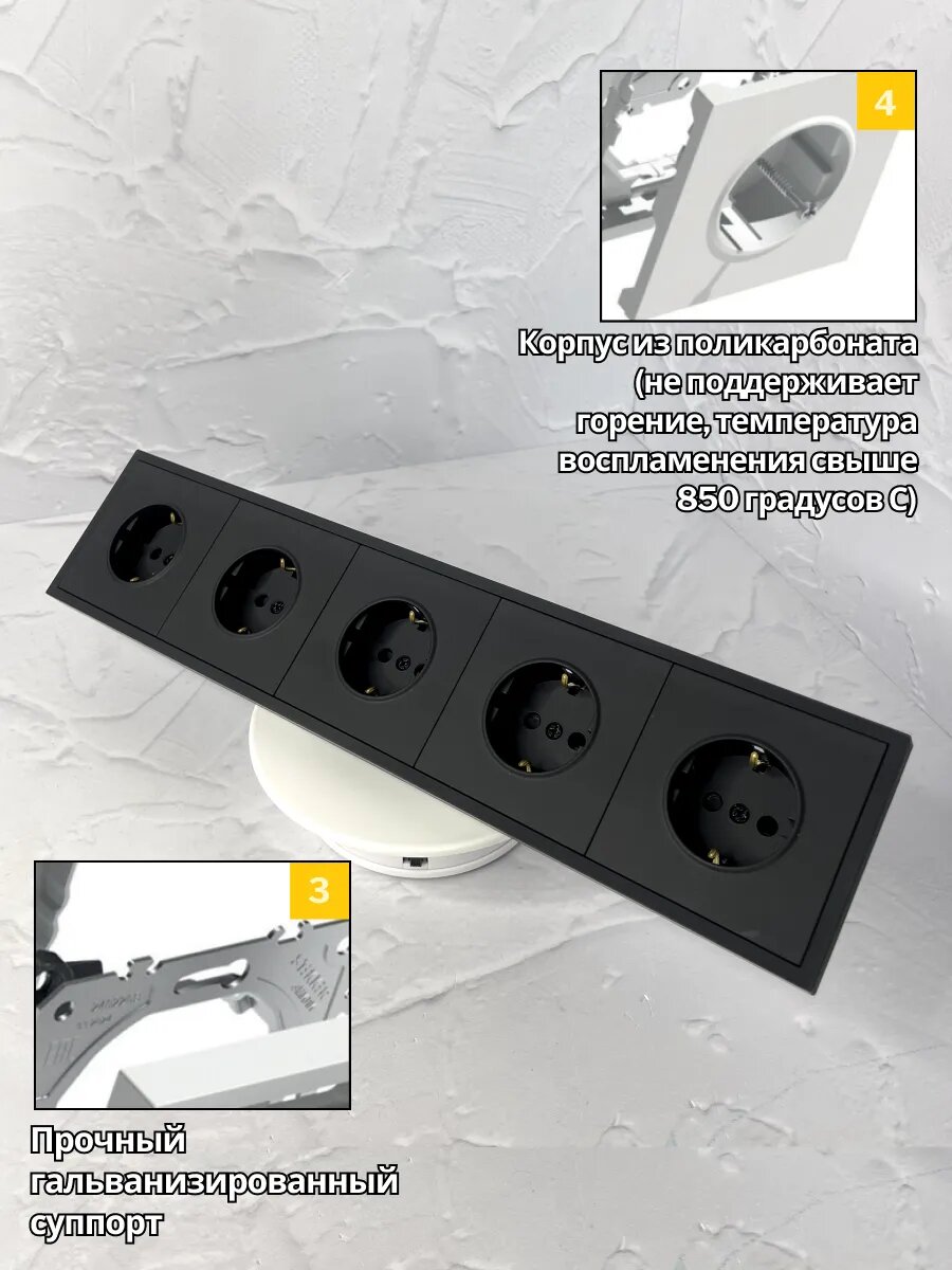 Розетка STEKKER Эмили, встраиваемая, пятиместная с заземлением, черная интересное: