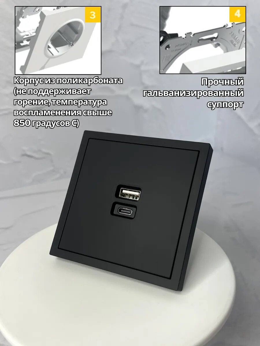 Розетка STEKKER Эмили, встраиваемая, USB + type C, черная интересное: