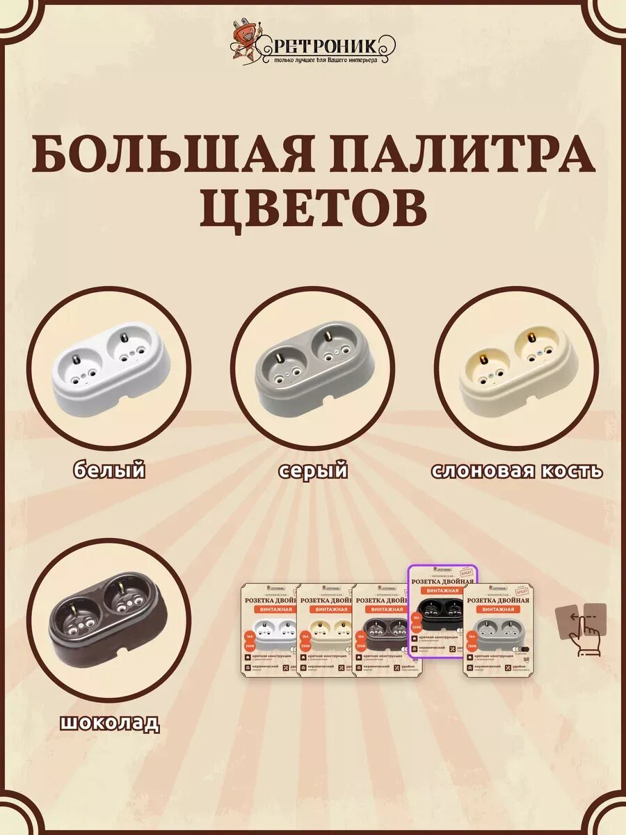СохранитьРозетка двойная керамическая ретро накладная черная 3 шт, Арбат интересное: