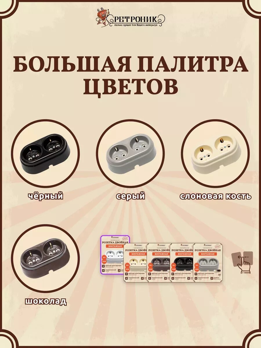 СохранитьРетро розетка двойная керамическая, комплект белый 2 шт, Арбат интересное: