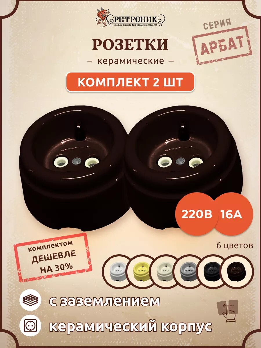 Купить Ретро розетка накладная керамическая шоколадная, 2 шт, Арбат