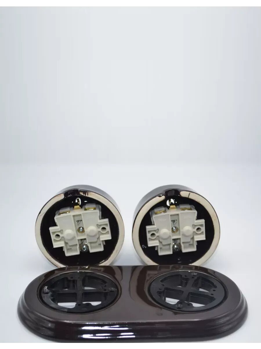 Розетка двойная ретро керамическая накладная, комплект коричневый 2 шт, Арбат