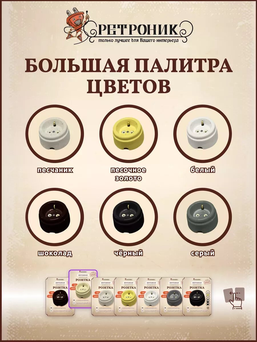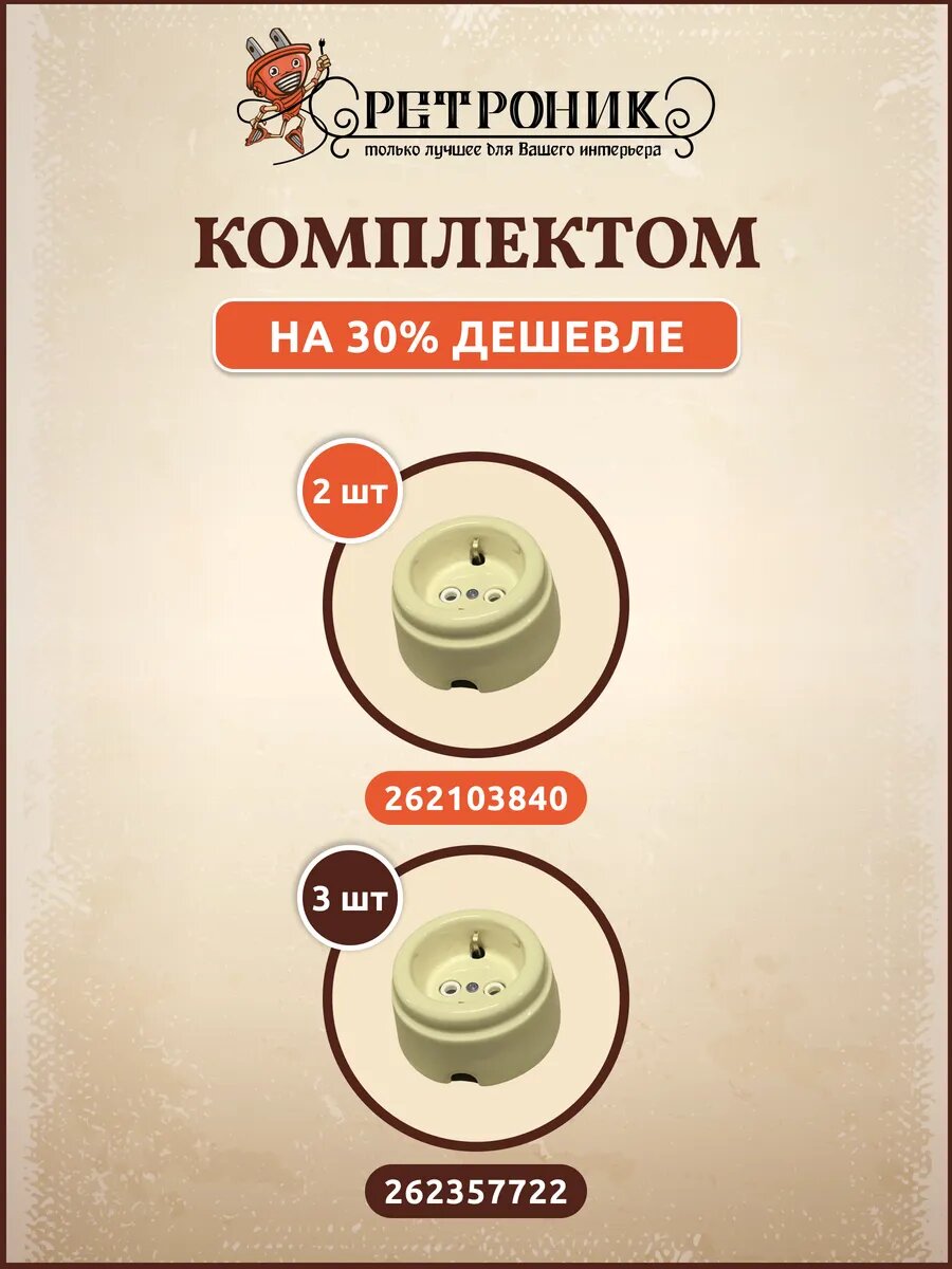 СохранитьРетро розетка накладная керамическая песочная, комплект 3 шт, Арбат интересное: