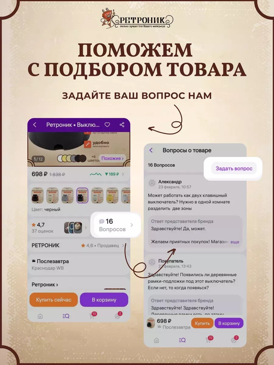 СохранитьРетро розетка накладная керамическая серая, комплект 2 шт, Арбат интересное: