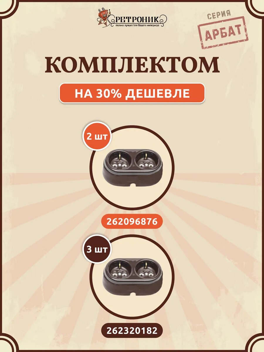 СохранитьРозетка двойная керамическая ретро накладная коричневая 3 шт, Арбат интересное: