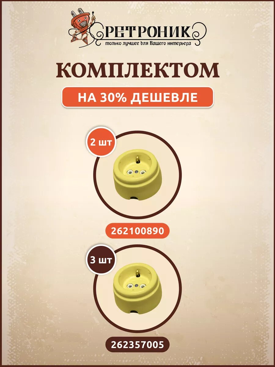 СохранитьРетро розетка накладная керамическая комплект желтый 3 шт, Арбат интересное: