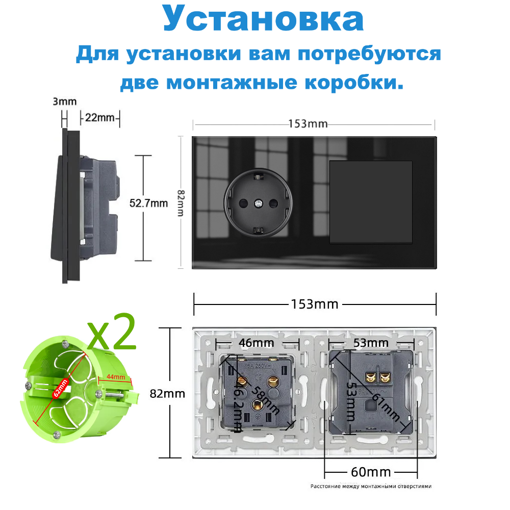 СохранитьРозетка с одноклавишным выключателем, рамка стекло, цвет чёрный. F8 интересное: