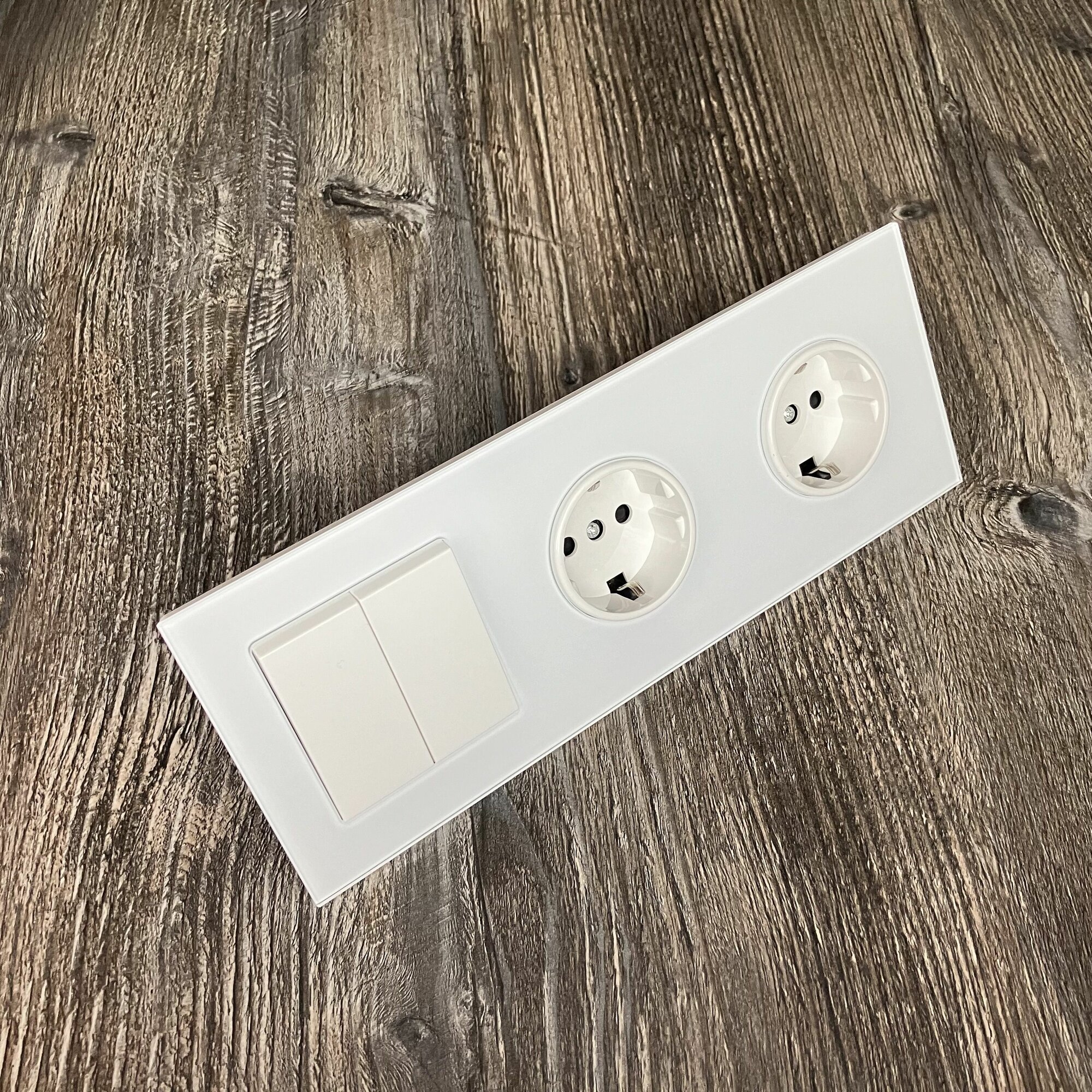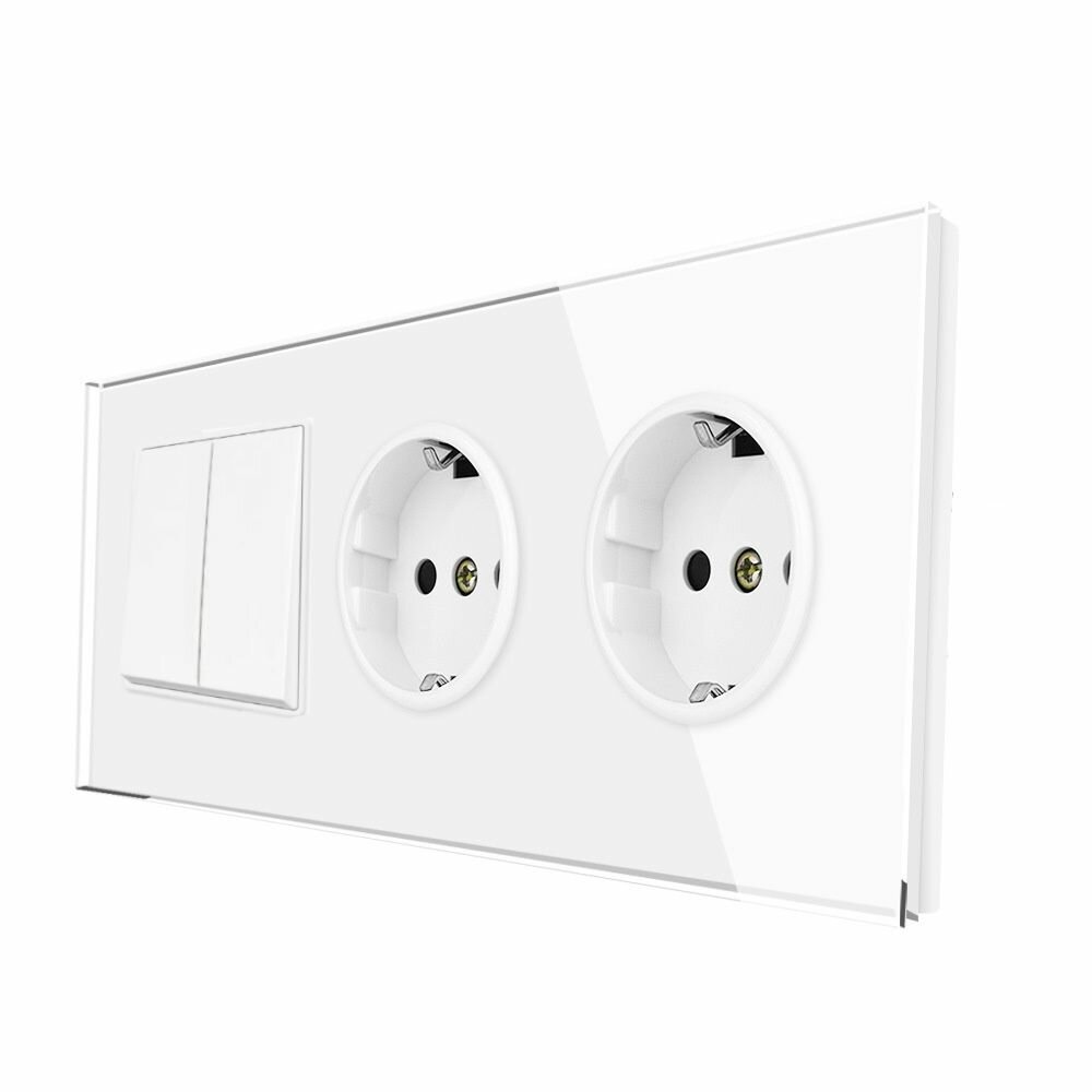 СохранитьДвойная розетка с выключателем 2-клавишный, 3 поста, рамка стекло, цвет белый. F8 интересное: