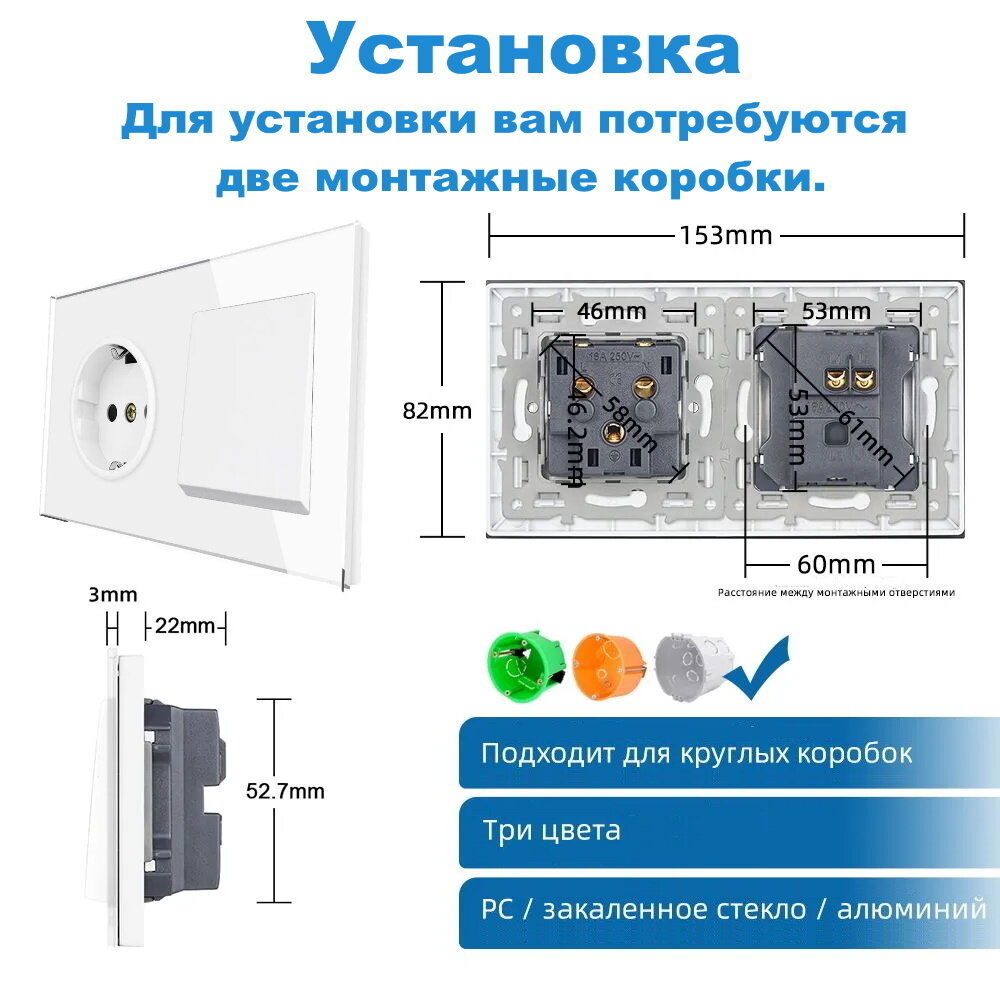 СохранитьРозетка с одноклавишным выключателем, рамка стекло, цвет белый. F8 интересное: