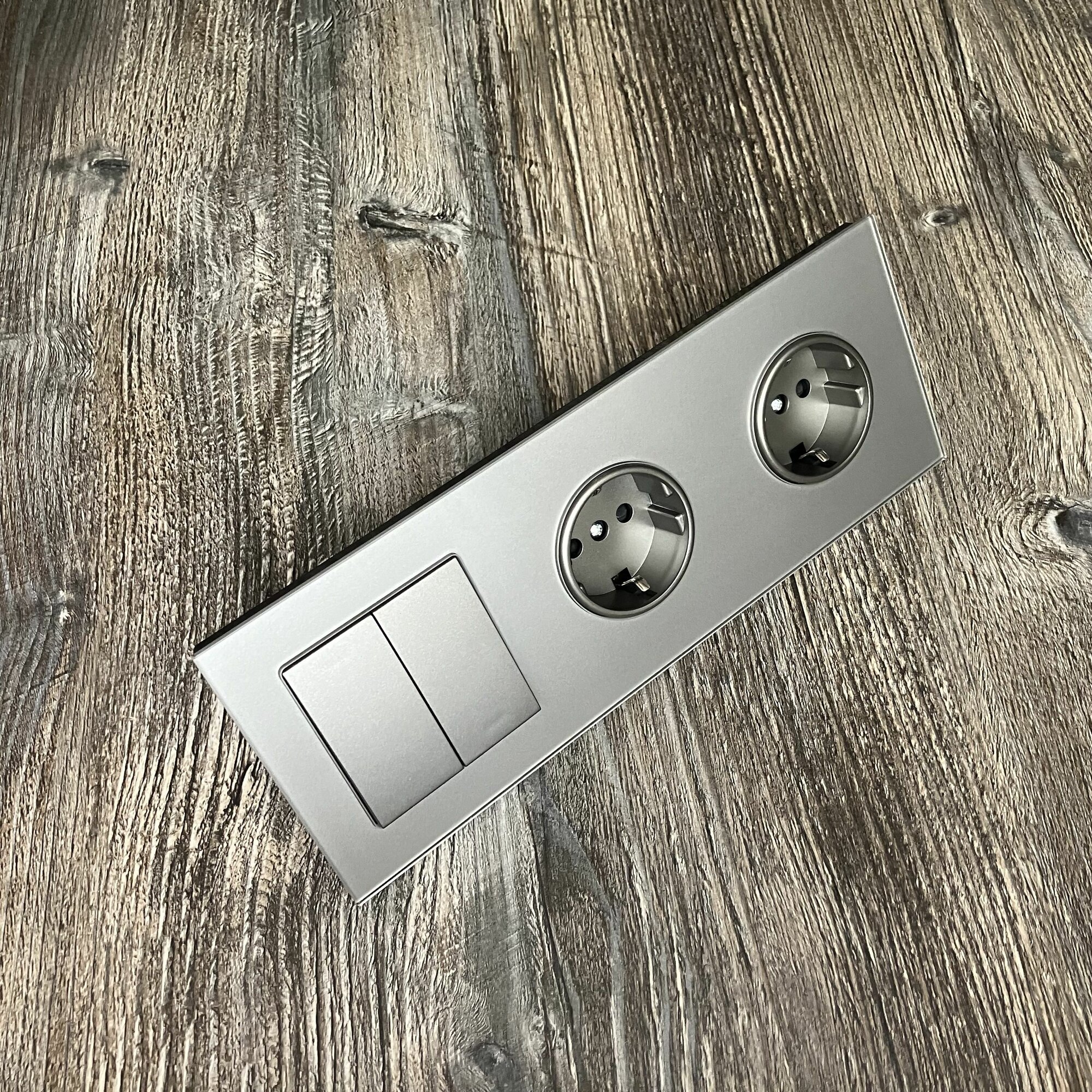 СохранитьДвойная розетка с выключателем 2-клавишный, 3 поста, рамка стекло, цвет серый. F8 интересное: