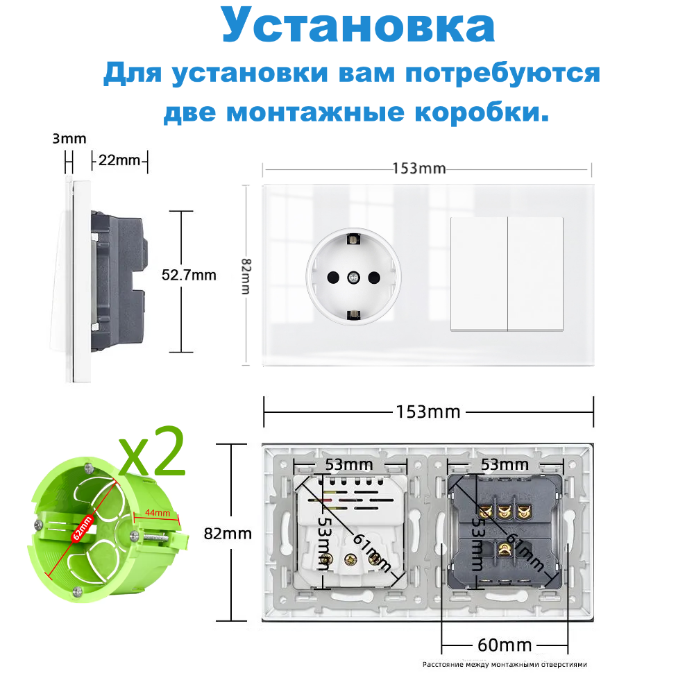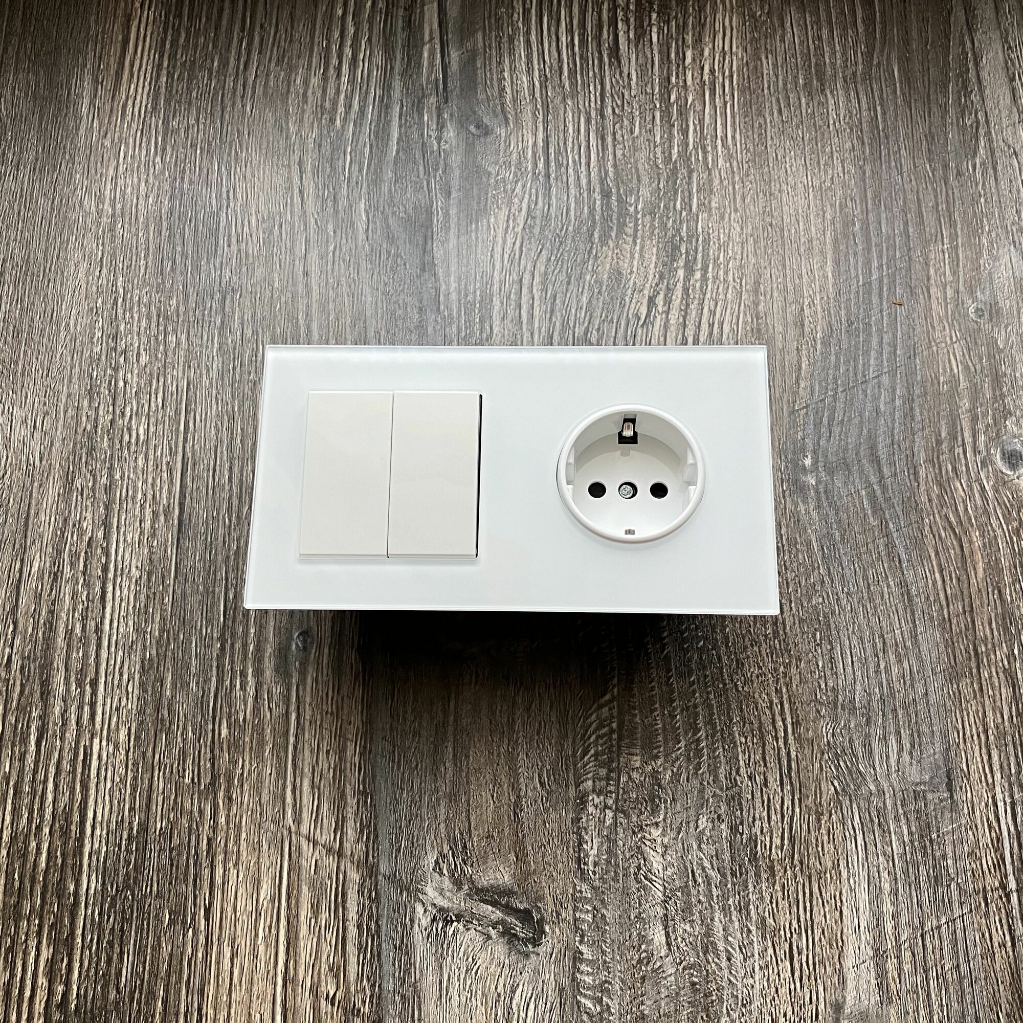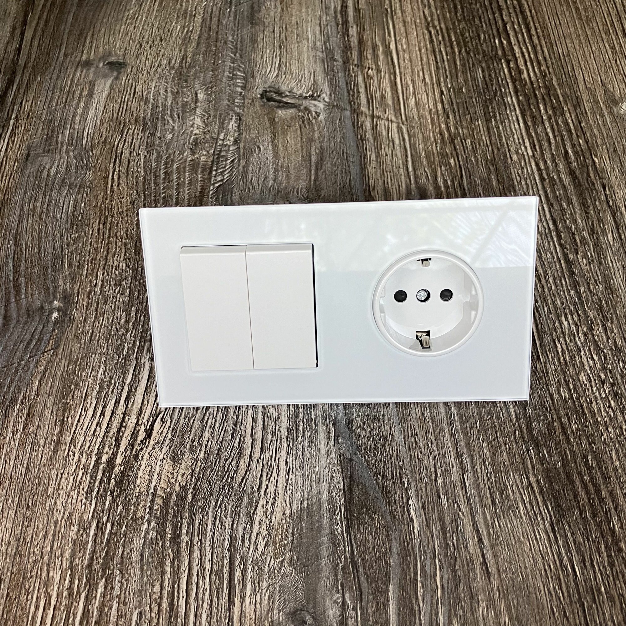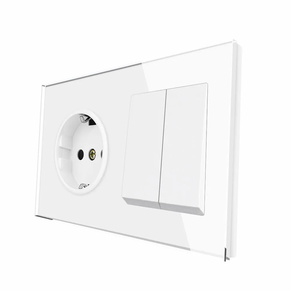 СохранитьРозетка с двухклавишным выключателем, рамка стекло, цвет белый. F8 интересное: