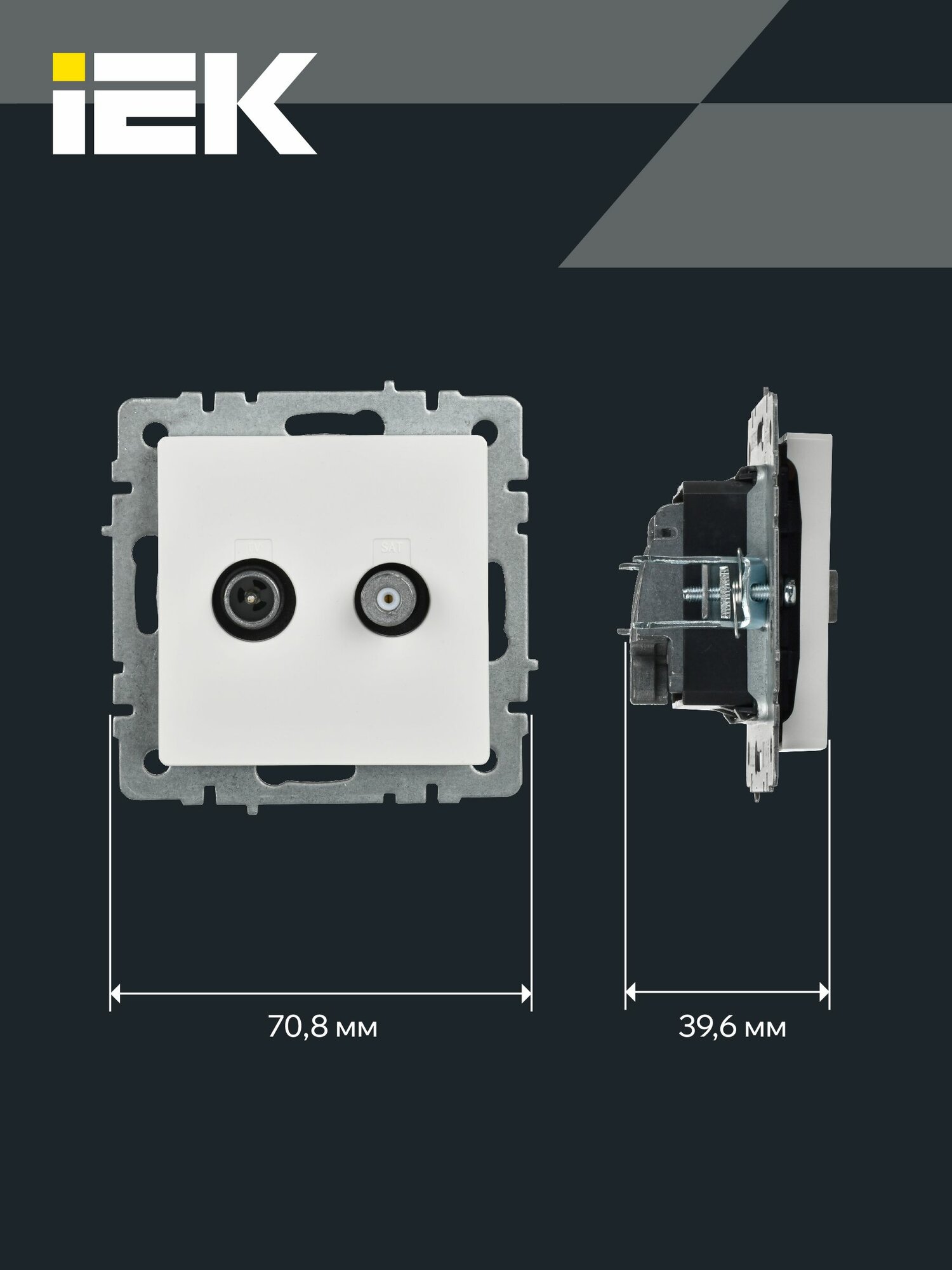 Розетка двойная телевизионная TV+SAT РТВ/РСп12-БрБ белый IEK серия BRITE интересное: