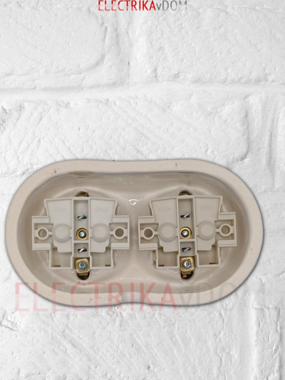 Ретро розетка двойная с заземлением, керамика, накладная цвет слоновая кость Арбат