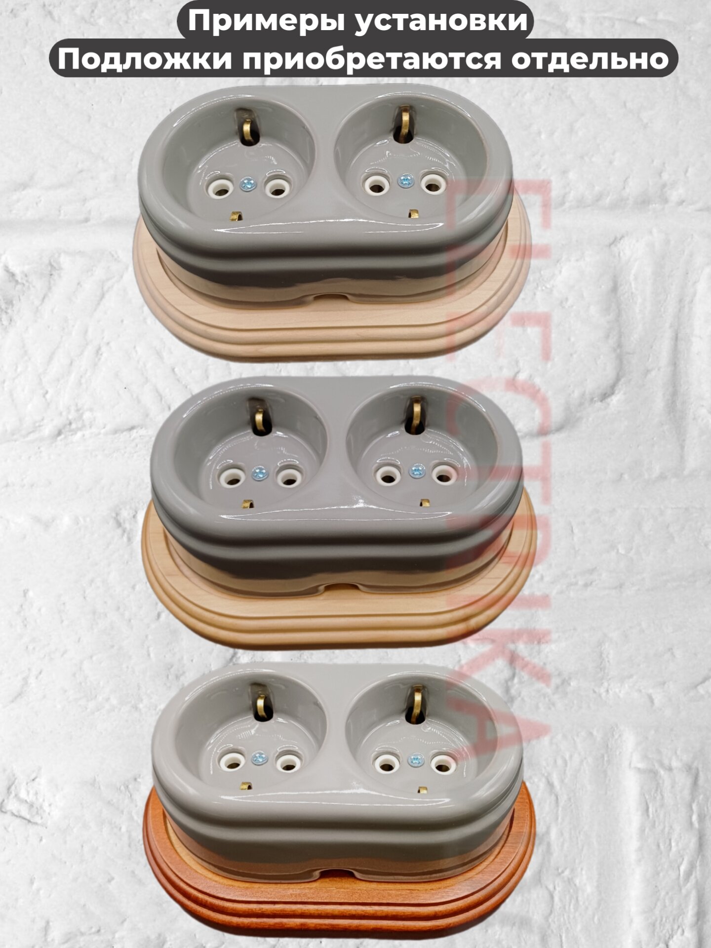 СохранитьIE Ретро розетка двойная с заземлением, керамика, цвет серый интересное: