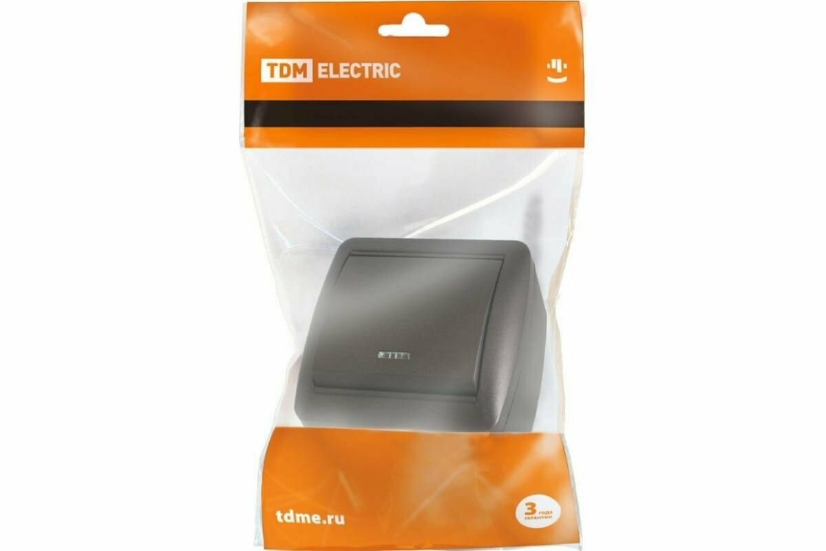 Выключатель 2-кл. открытой установки с подсветкой IP44 10А графит "Селигер" TDM