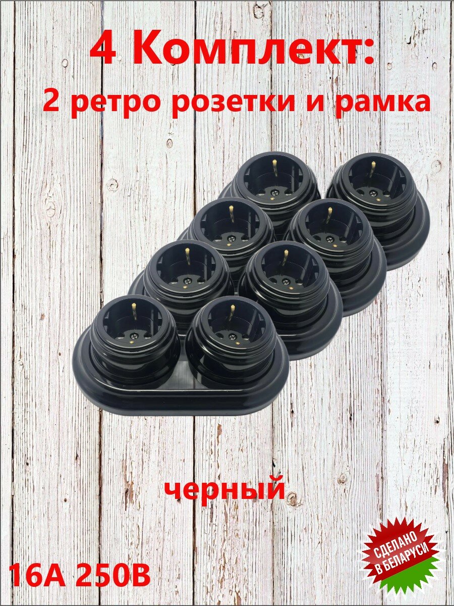 "Ретро розетки и рамки" - комплект из 4 штук черный интересное: