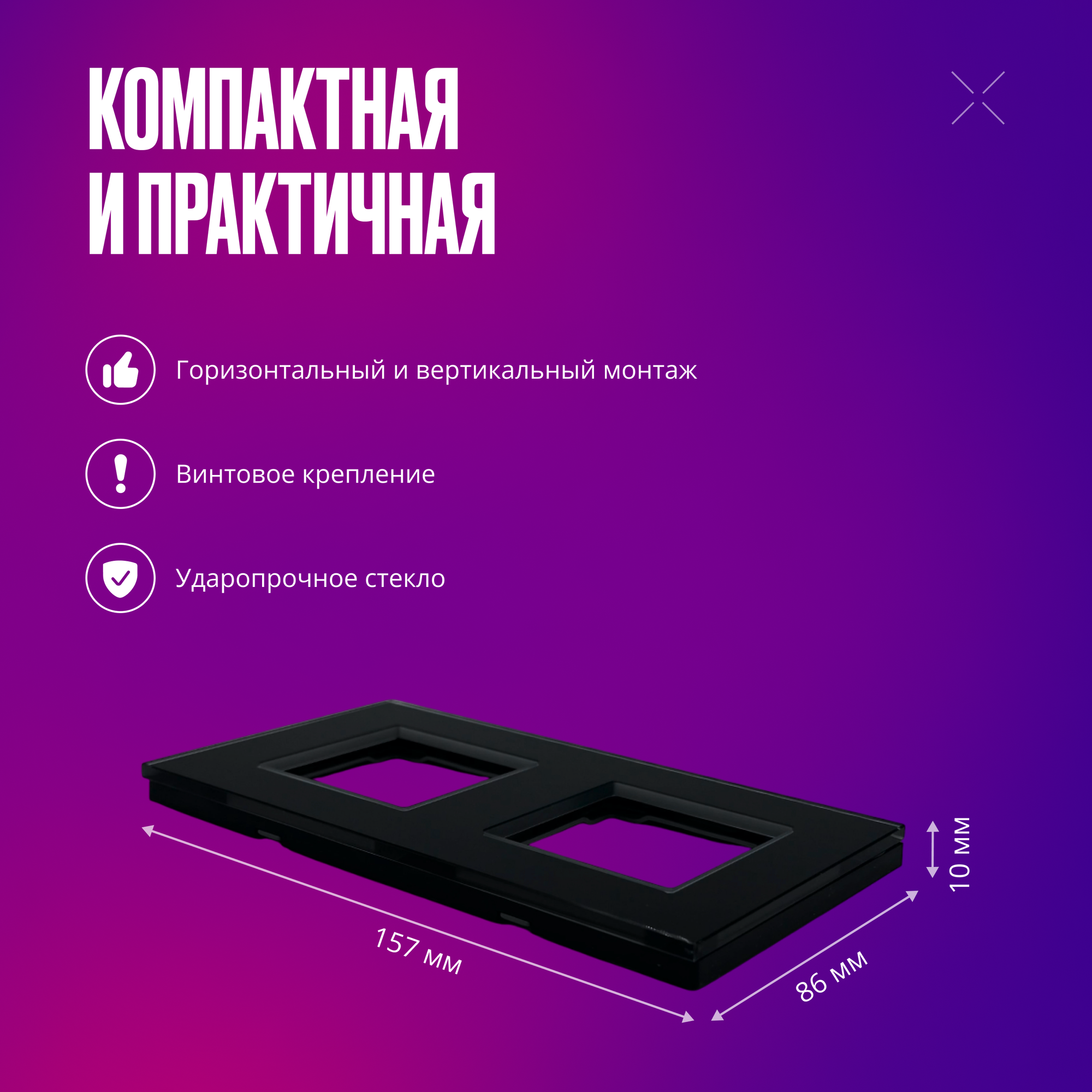 СохранитьРамка для розетки/выключателя электроустановочная на 2 поста, черная, стеклянная, квадратная, с металлическим брекетом интересное: