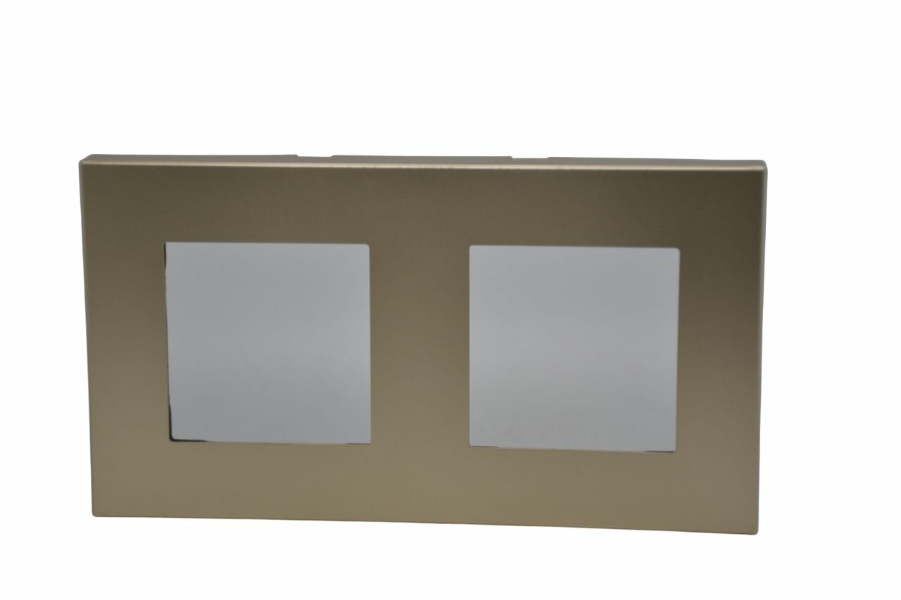 Купить Рамка для розетки/выключателя электроустановочная на 2 поста, золотая, пластиковая, квадратная, с металлическим брекетом