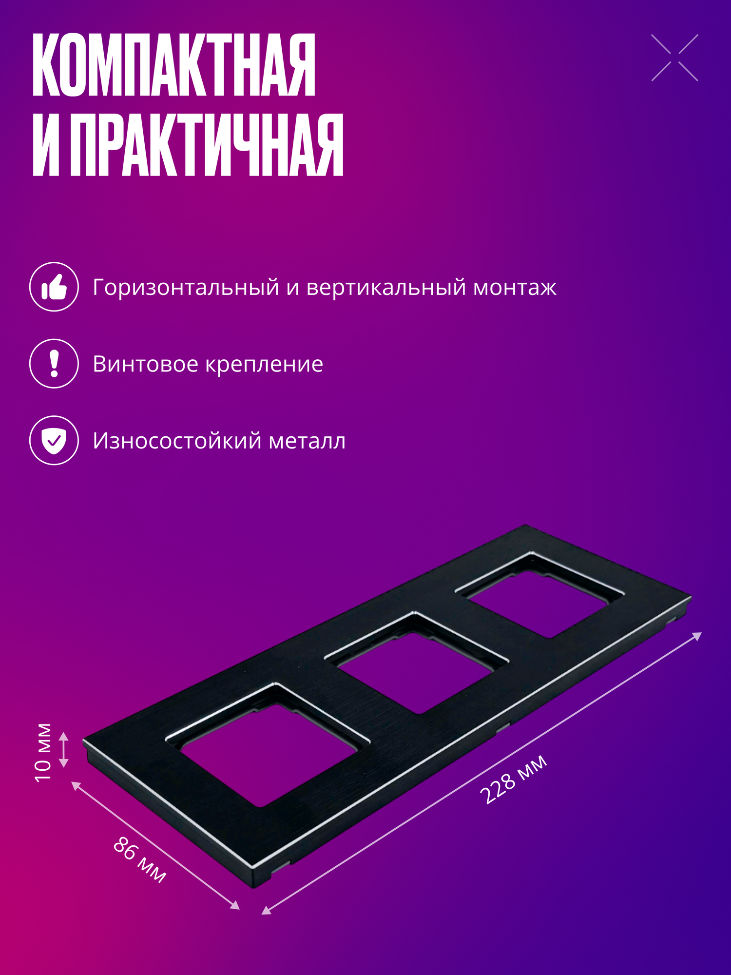 СохранитьРамка для розетки/выключателя электроустановочная на 3 поста, черная, металл, квадратная, с металлическим брекетом интересное: