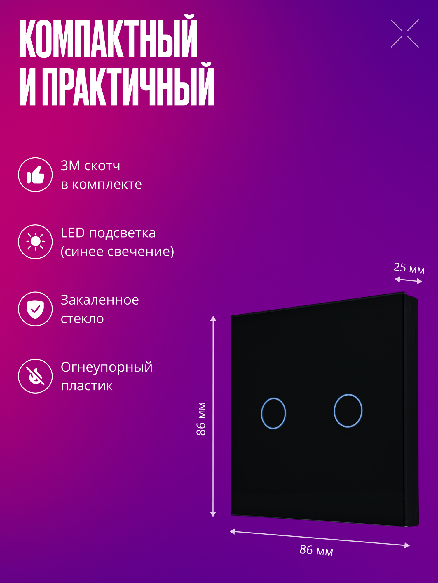 СохранитьПовторитель сенсорный умного выключателя RF 433 Mhz стеклянный на батарейках двухклавишный, черный интересное: