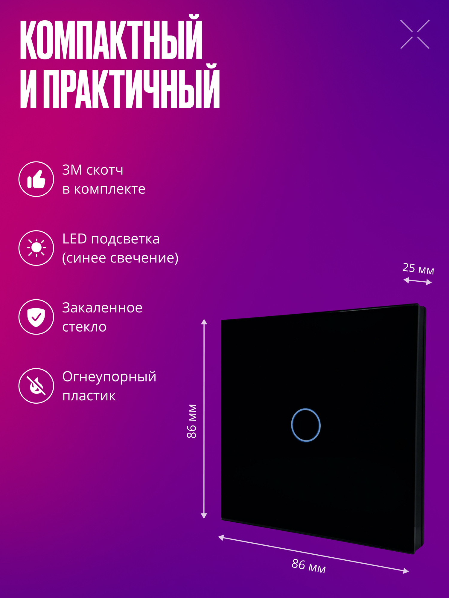 СохранитьПовторитель сенсорный умного выключателя RF 433 Mhz стеклянный на батарейках одноклавишный, черный интересное: