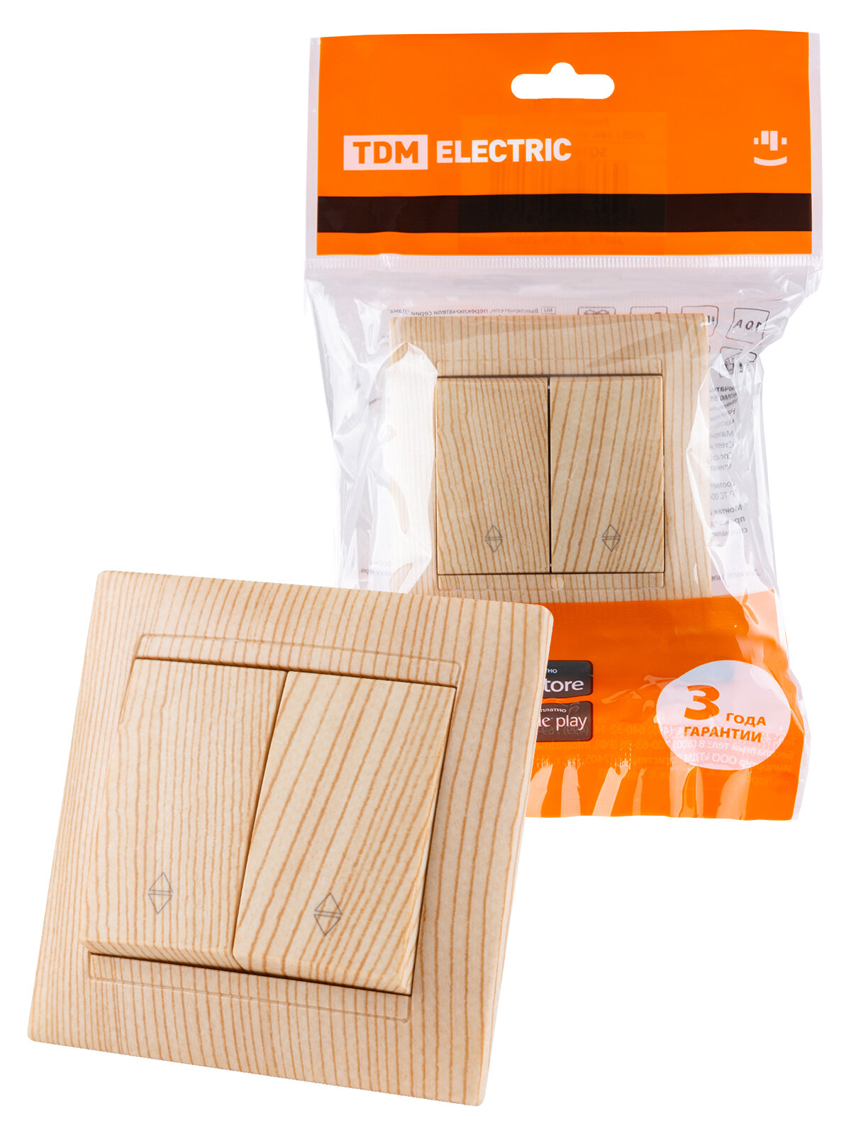 Выключатель 2 кл. с подсветкой 10А сосна "Лама" TDM