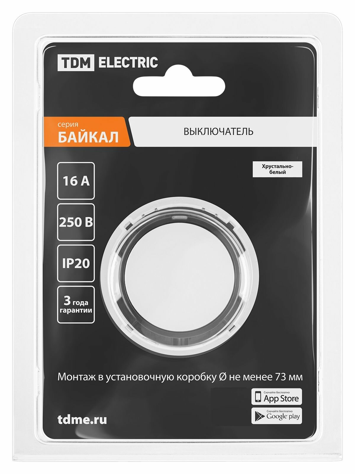Купить Выключатель 1-кл. 16А 250В кнопочный механизм белый, "Байкал" TDM