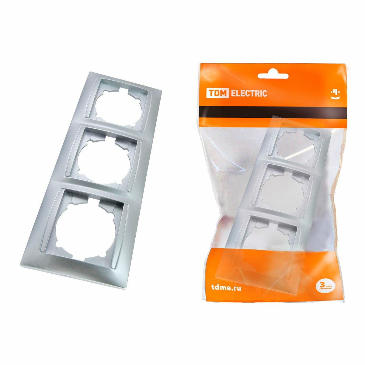 Купить Рамка на 3 места серебристый металлик горизонтальная Лама TDM ELECTRIC