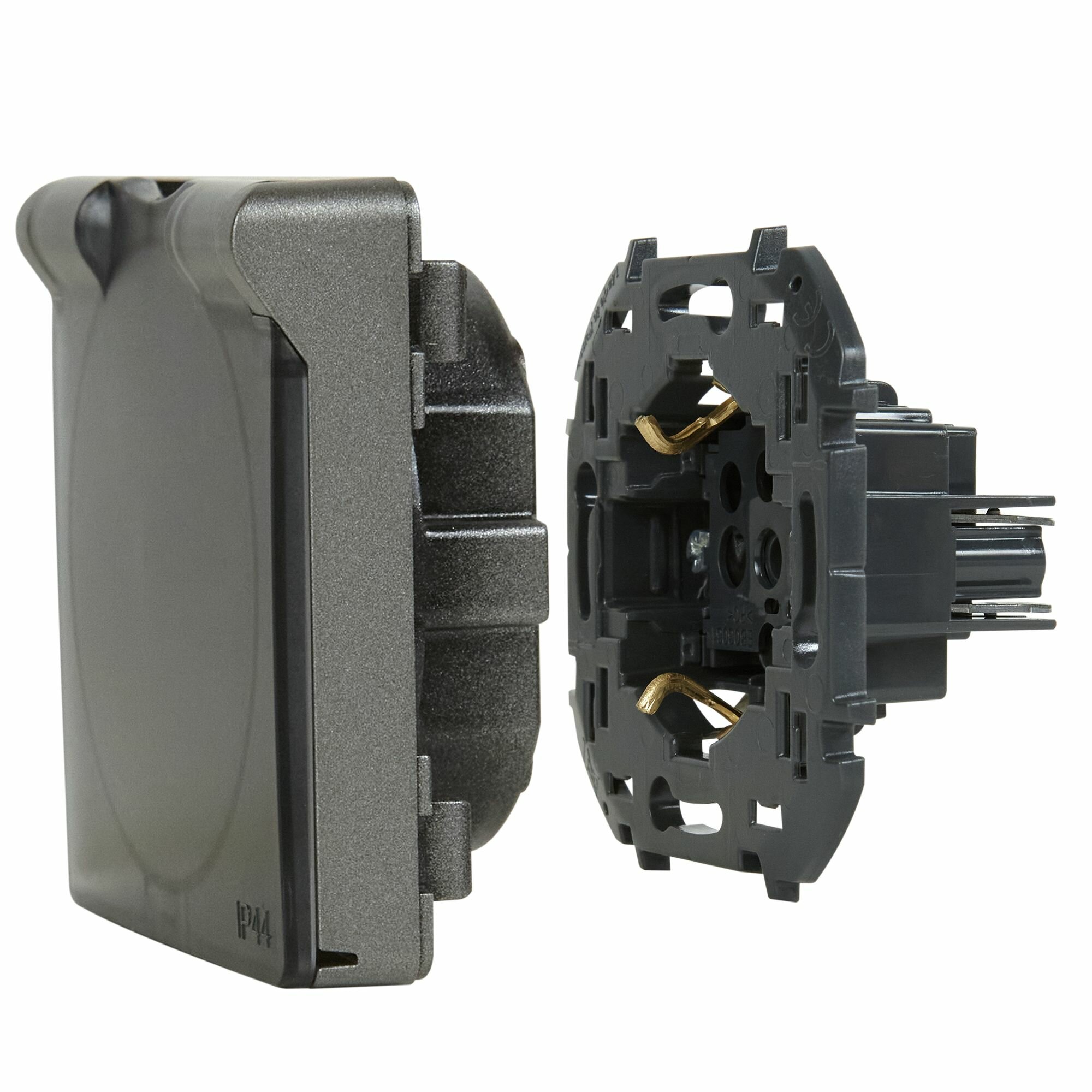 Розетка встраиваемая влагозащищенная Lexman Lilian с заземлением с крышкой IP44 цвет антрацит