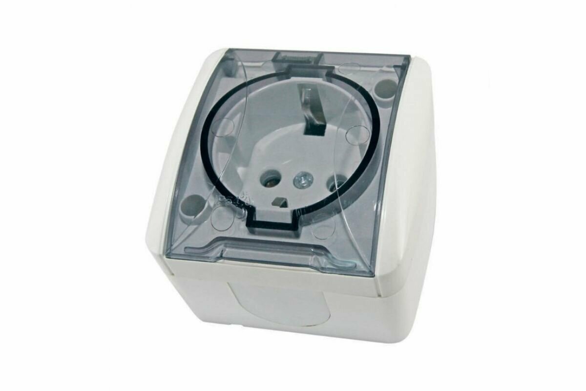 Купить Розетка открытой установки с прозрачной крышкой 2П, с заземлением, 16А, белая, IP54, Селигер