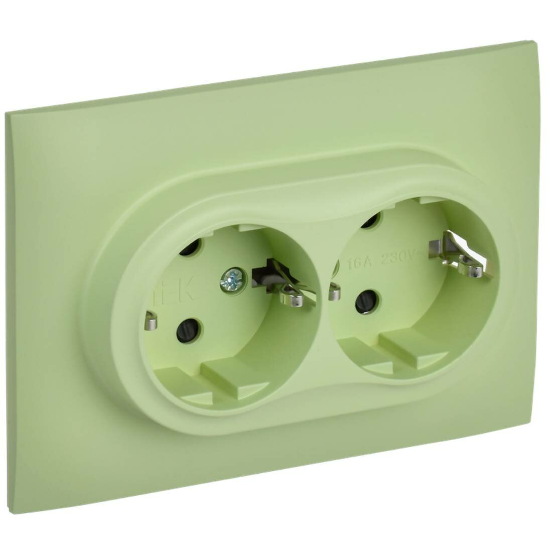 Розетка двухместная IEK SKANDY с заземлением с защитными шторками 16А в сборе SK-R07G мятный (комплект из 10 шт.)