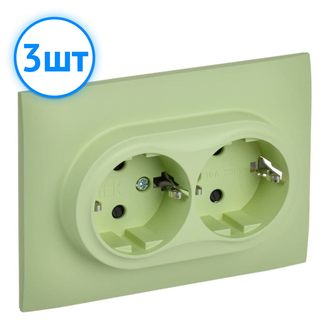 Купить Розетка двухместная IEK SKANDY с заземлением с защитными шторками 16А в сборе SK-R07G мятный (комплект из 3 шт.)