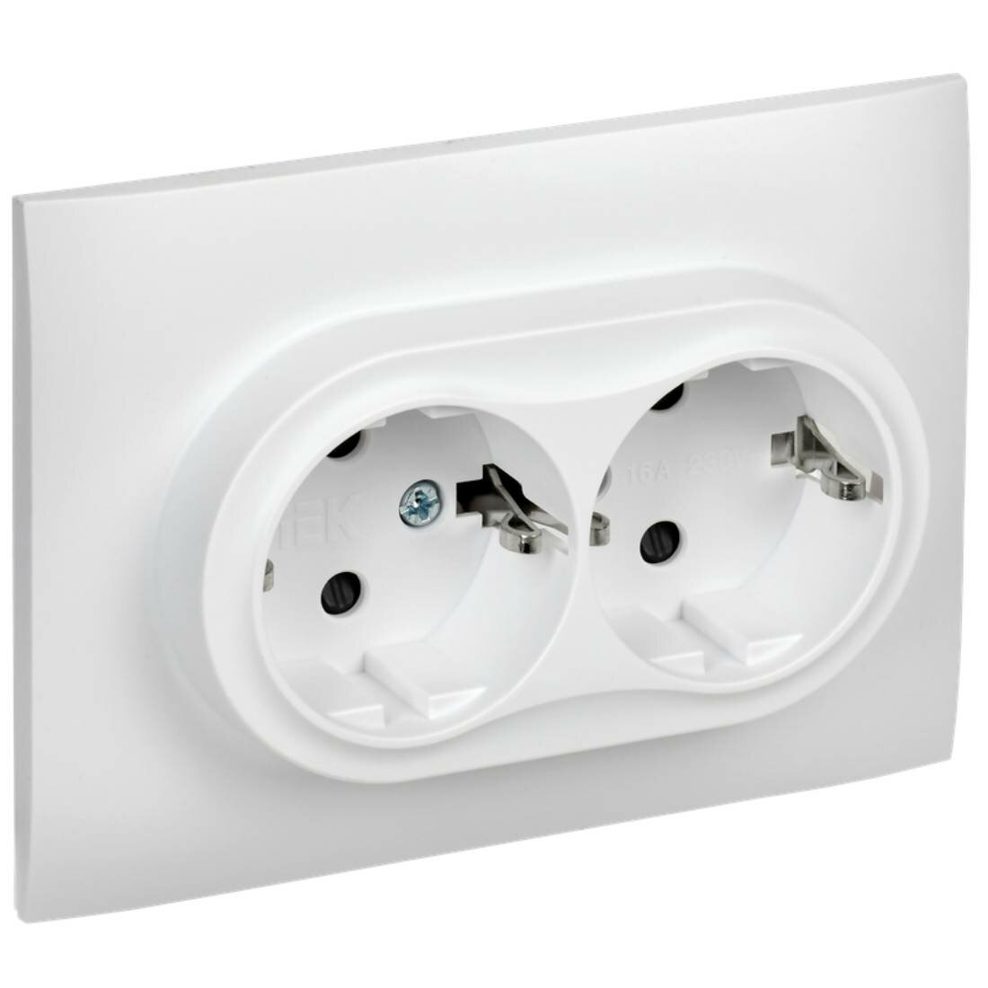 Розетка двухместная IEK SKANDY с заземлением с защитными шторками 16А SK-R07W арктический белый (комплект из 10 шт.)