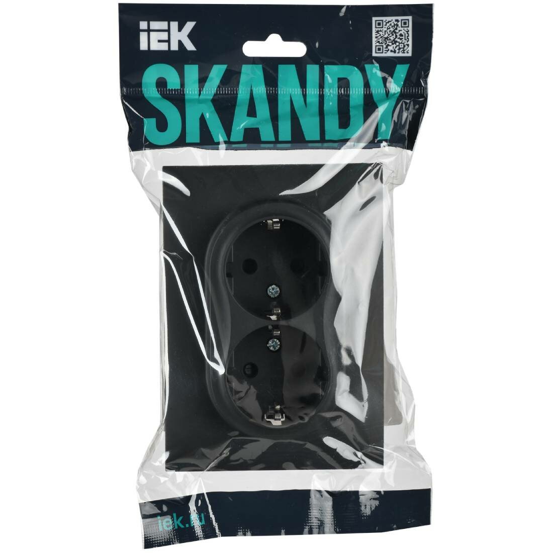 Розетка двухместная IEK SKANDY с заземлением с защитными шторками 16А в сборе SK-R07Bl черный (комплект из 10 шт.)