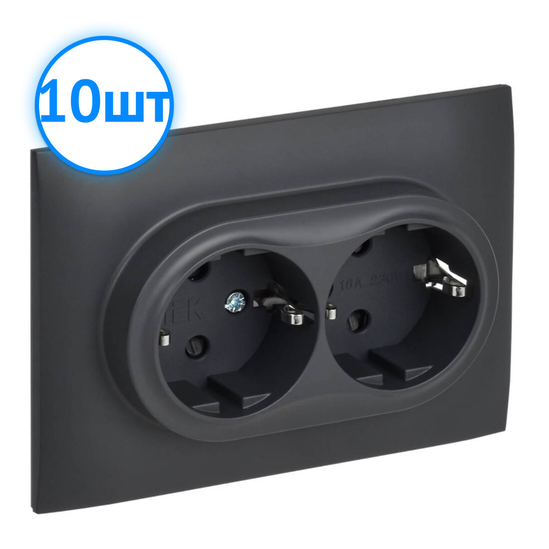 Розетка двухместная IEK SKANDY с заземлением с защитными шторками 16А в сборе SK-R07G графит (комплект из 10 шт.)