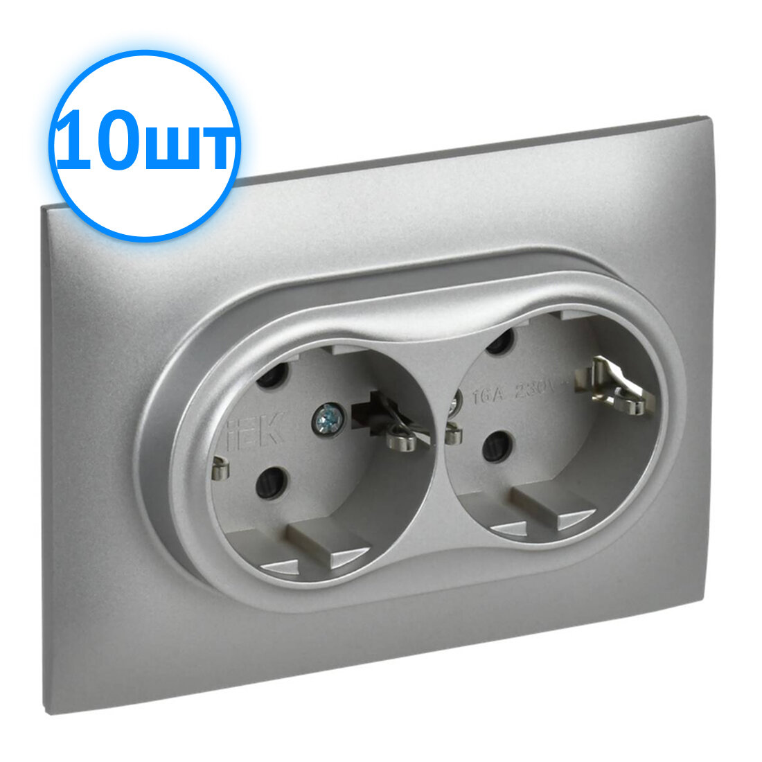 Купить Розетка двухместная IEK SKANDY с заземлением с защитными шторками 16А в сборе SK-R07S серебряный (комплект из 10 шт.)