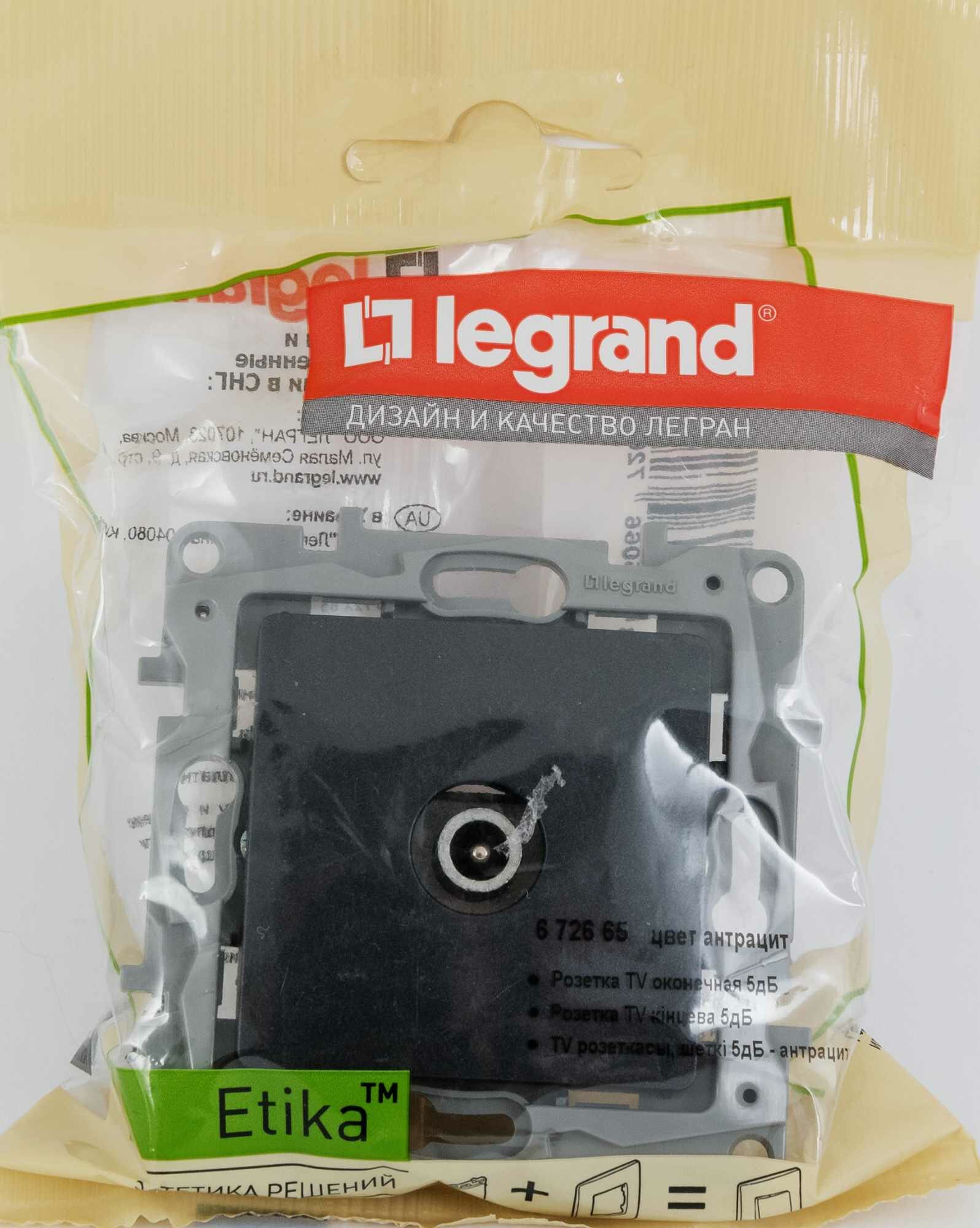 Legrand 672665 Розетка TV оконечная 5дБ/5-862мГц-Etika-Антрацит интересное: