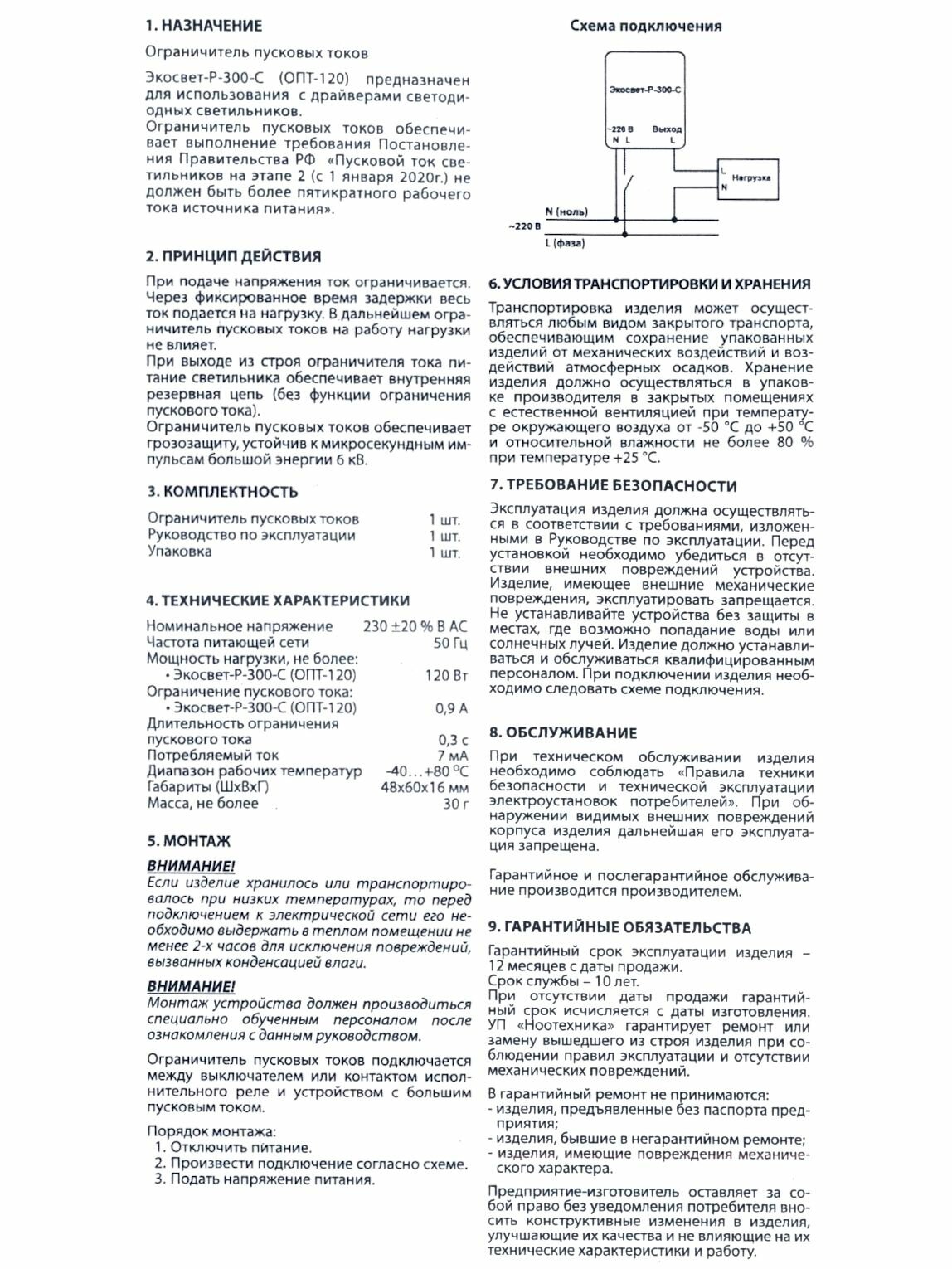 Экосвет-Р-300-С-120 ограничитель пусковых токов, 120Вт, Ноотехника интересное: