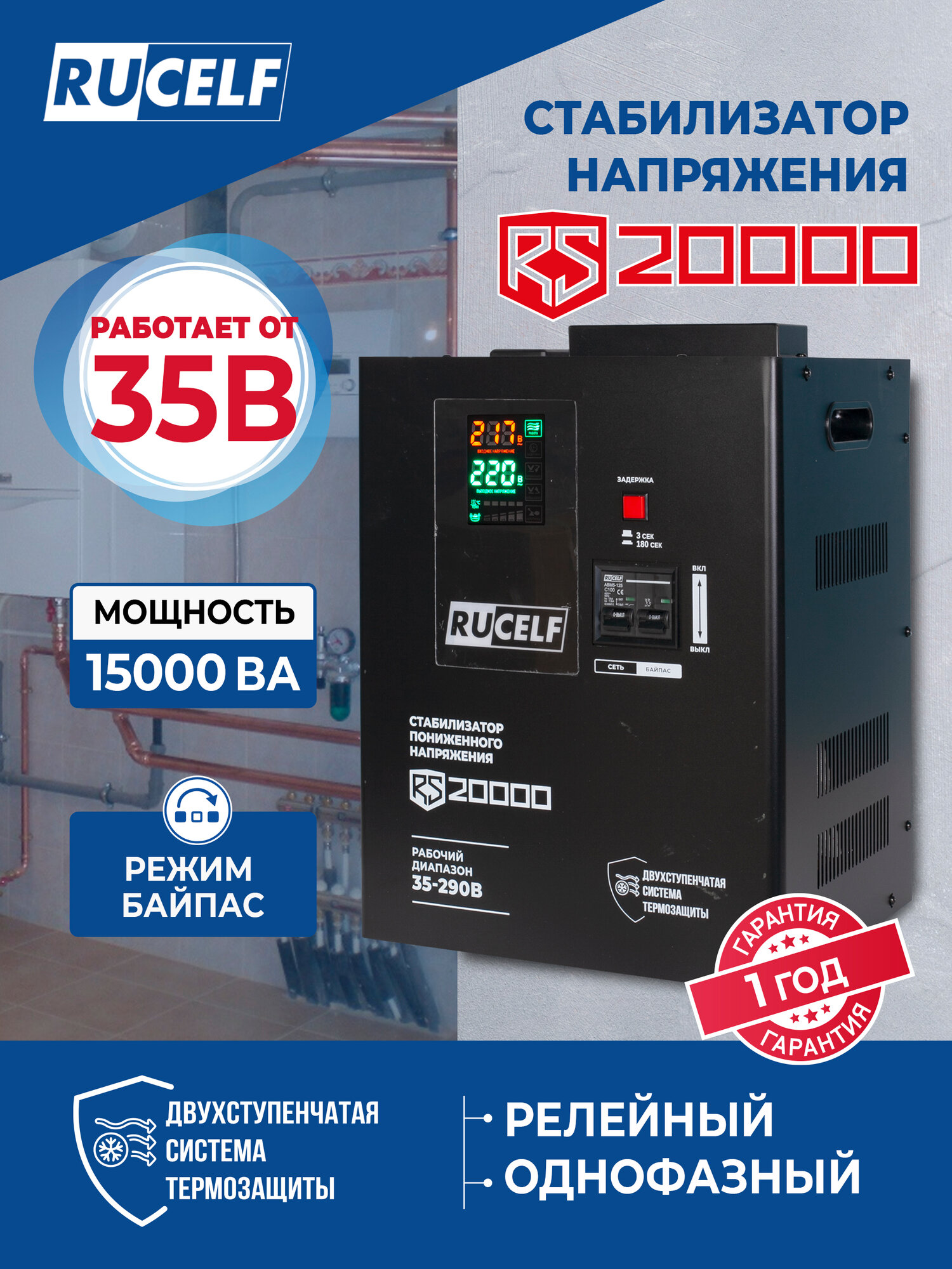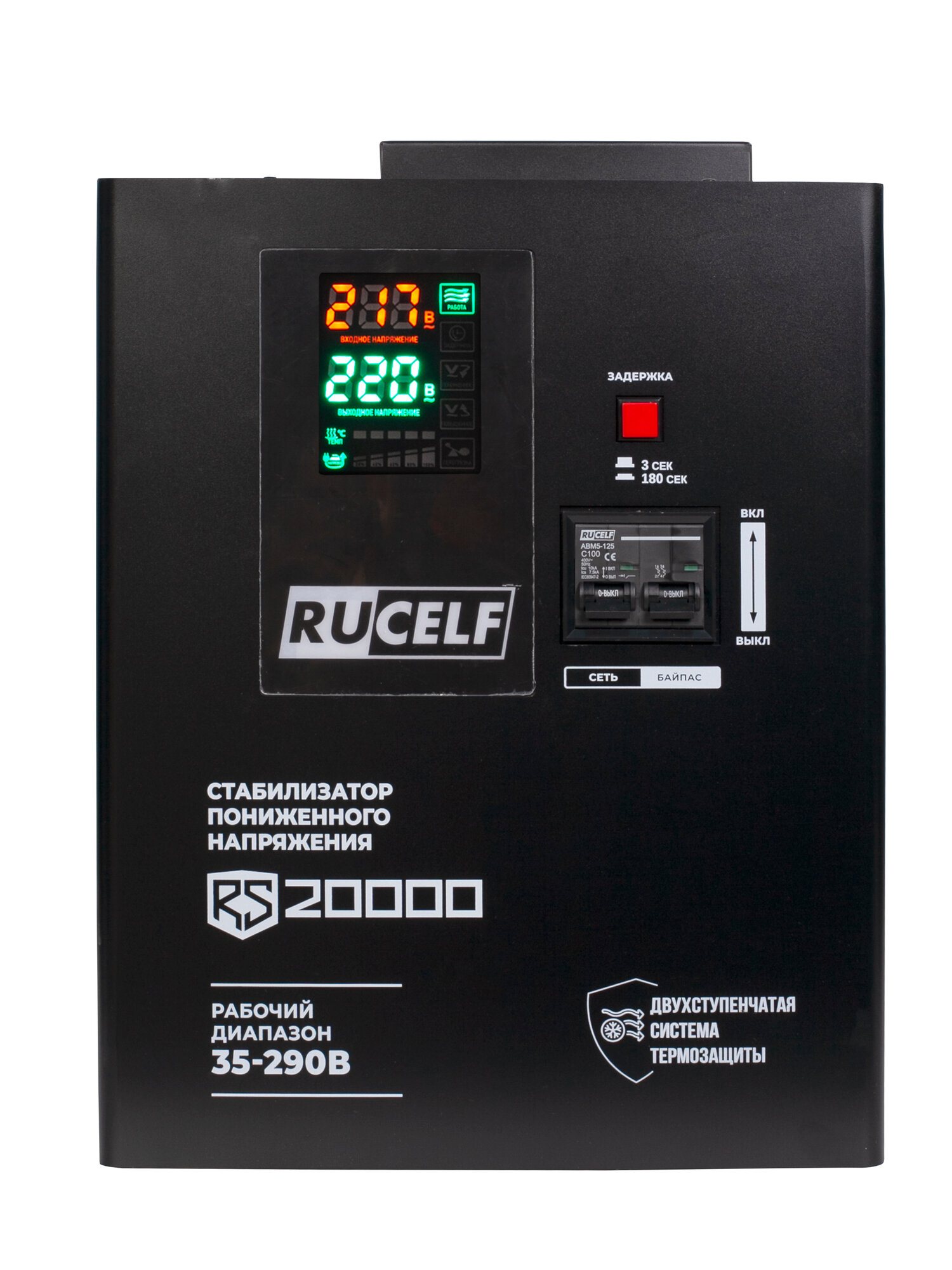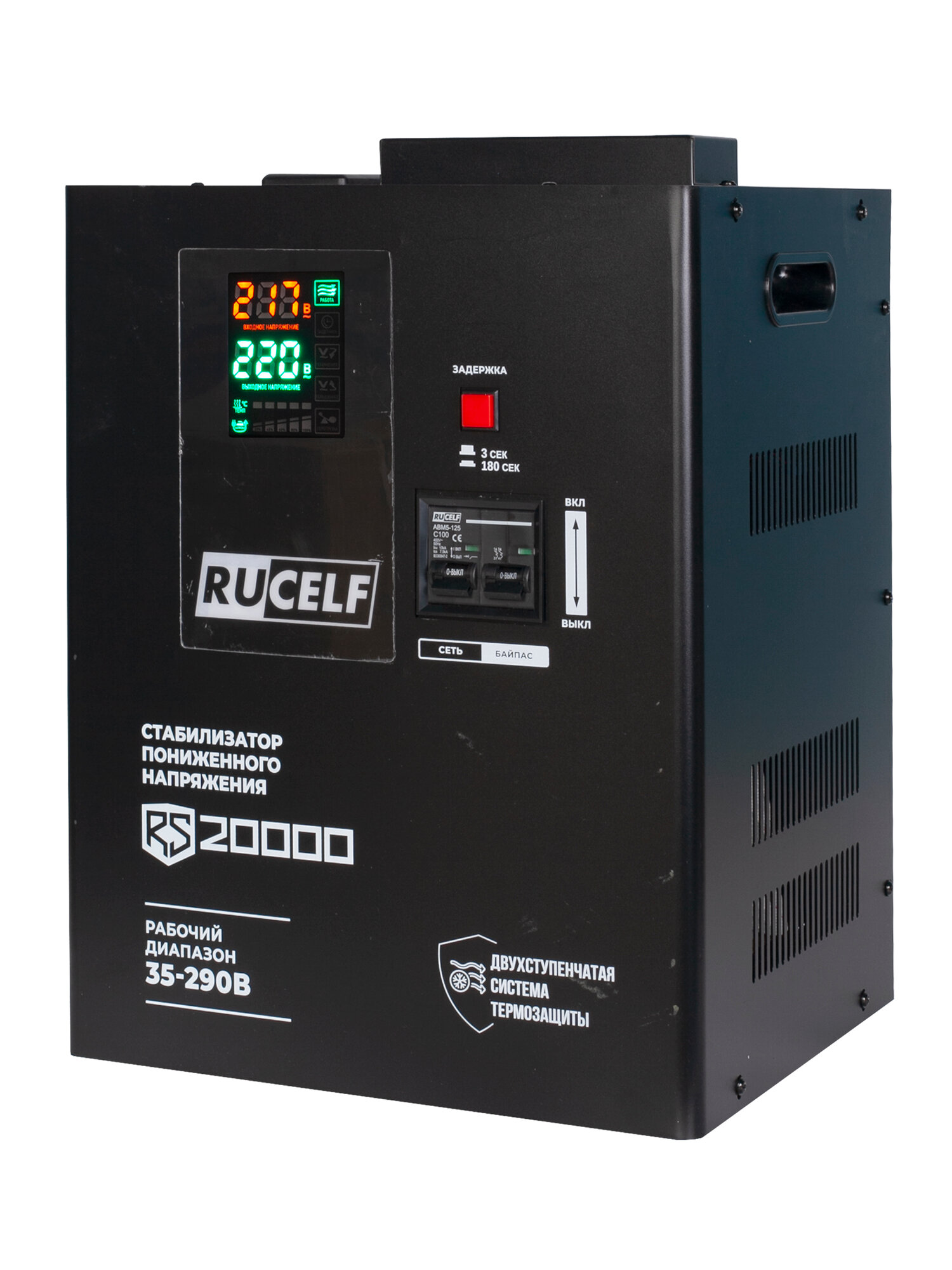 Стабилизатор напряжения RUCELF RS-20000, релейный, 20000 ВА, настенный, от пониженного напряжения интересное:
